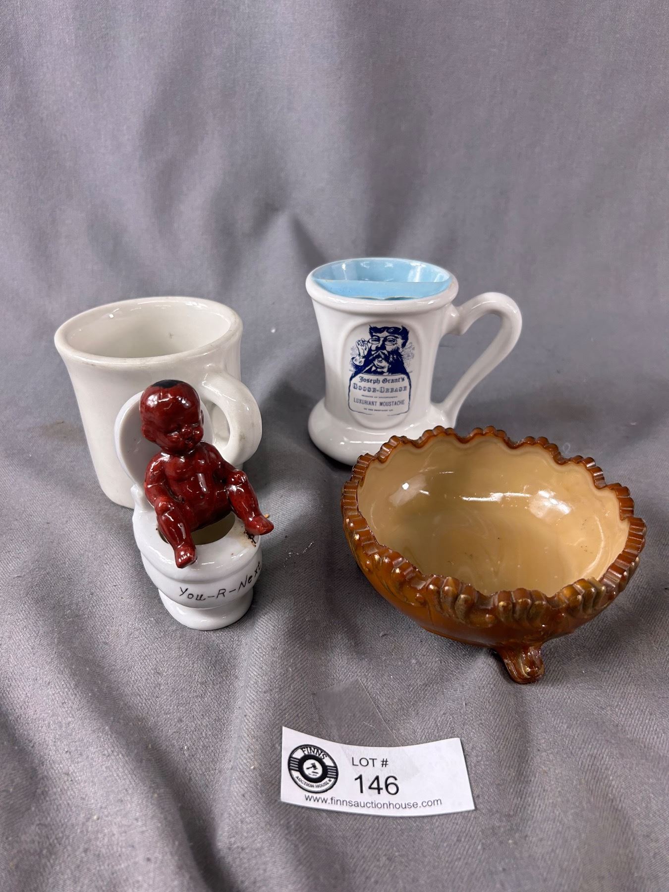 Vintage Medalata Mug, Rare Barbers Goose Grease Shaving Cup, Black Americana Figure and Slag? Glass Bowl