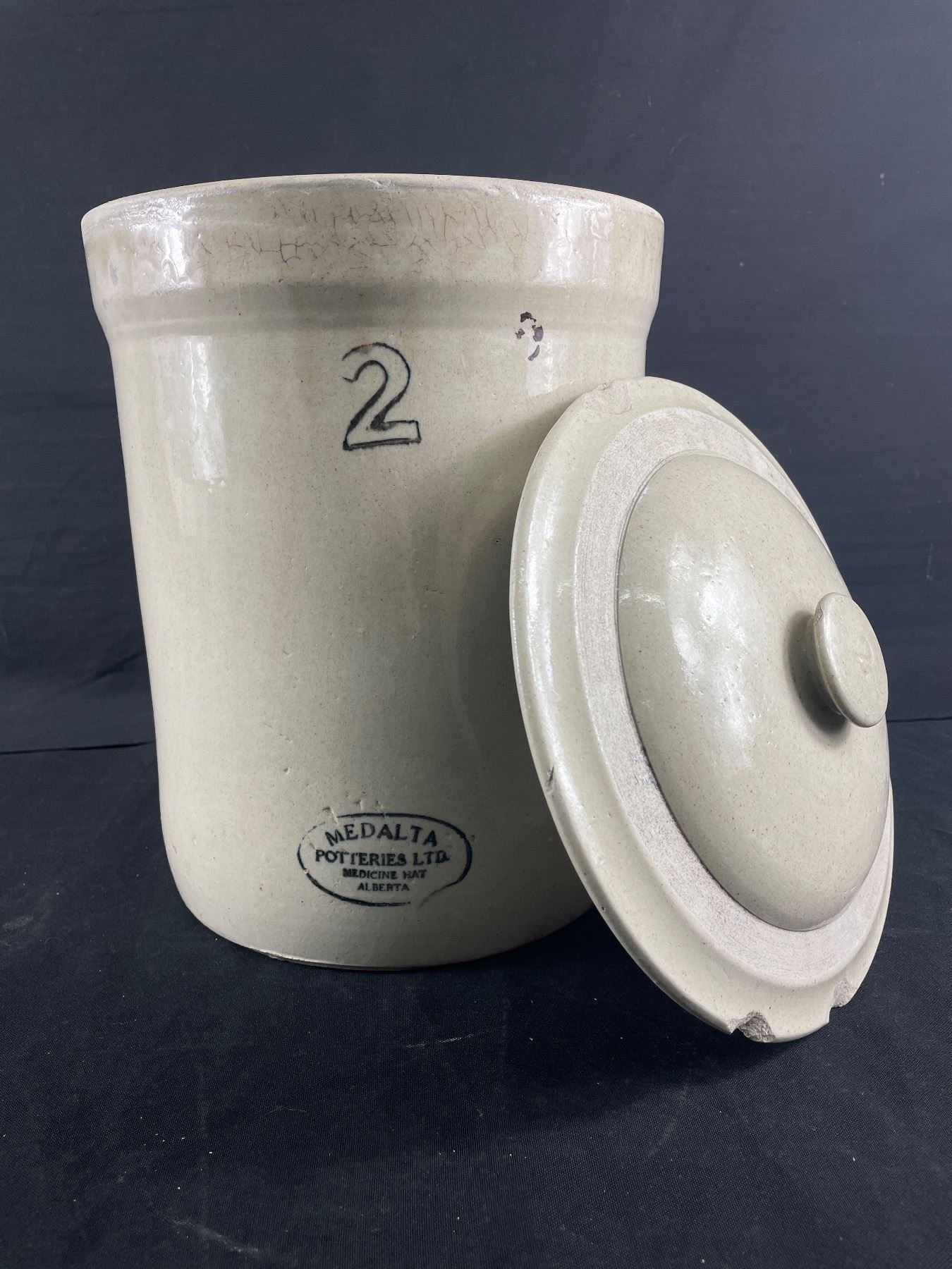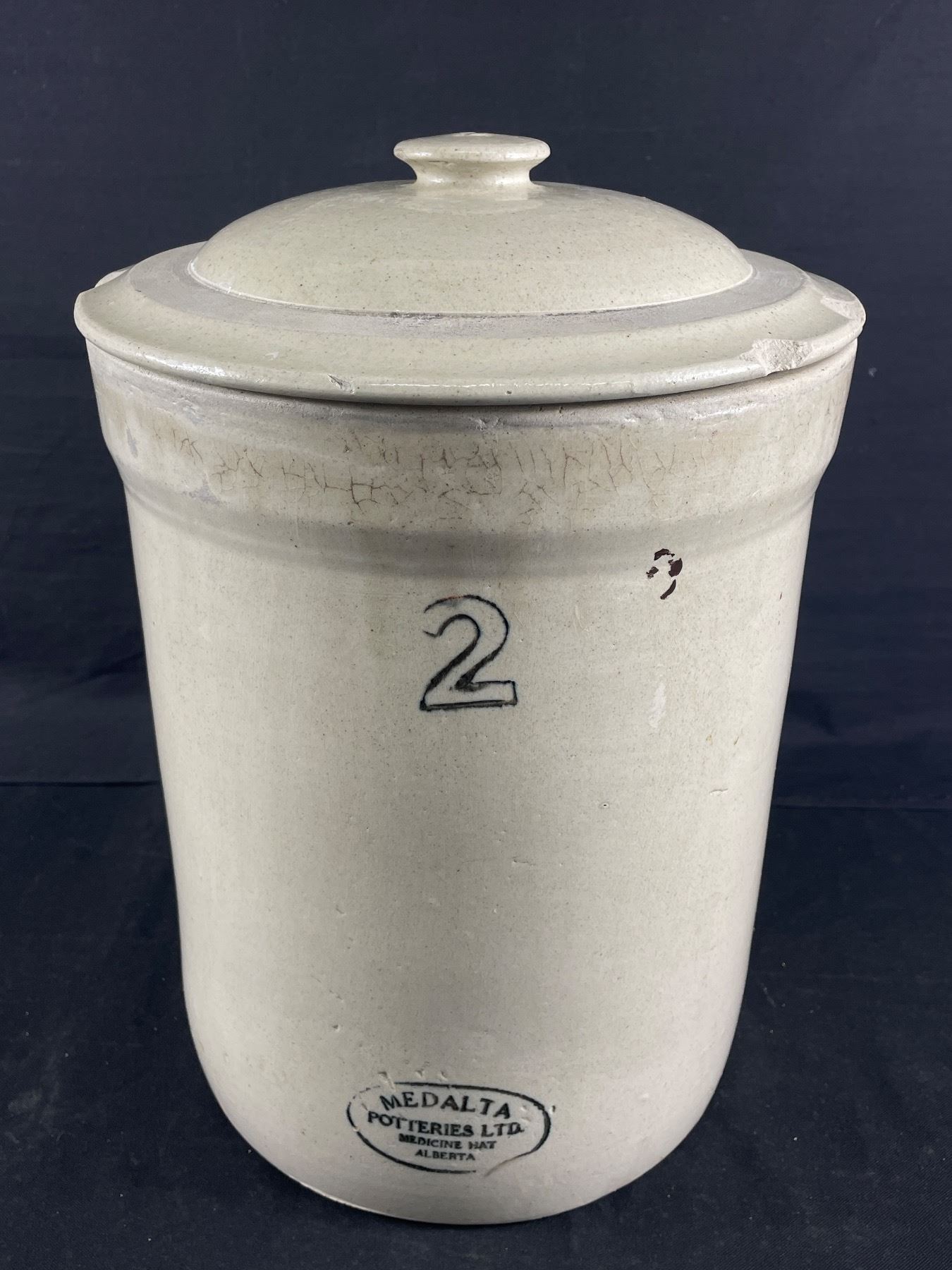 Vintage Medalta Potteries No.2 Imperial Stoneware Pot w/ Lid. As Found.NO SHIPPING Approx. 13.5"H