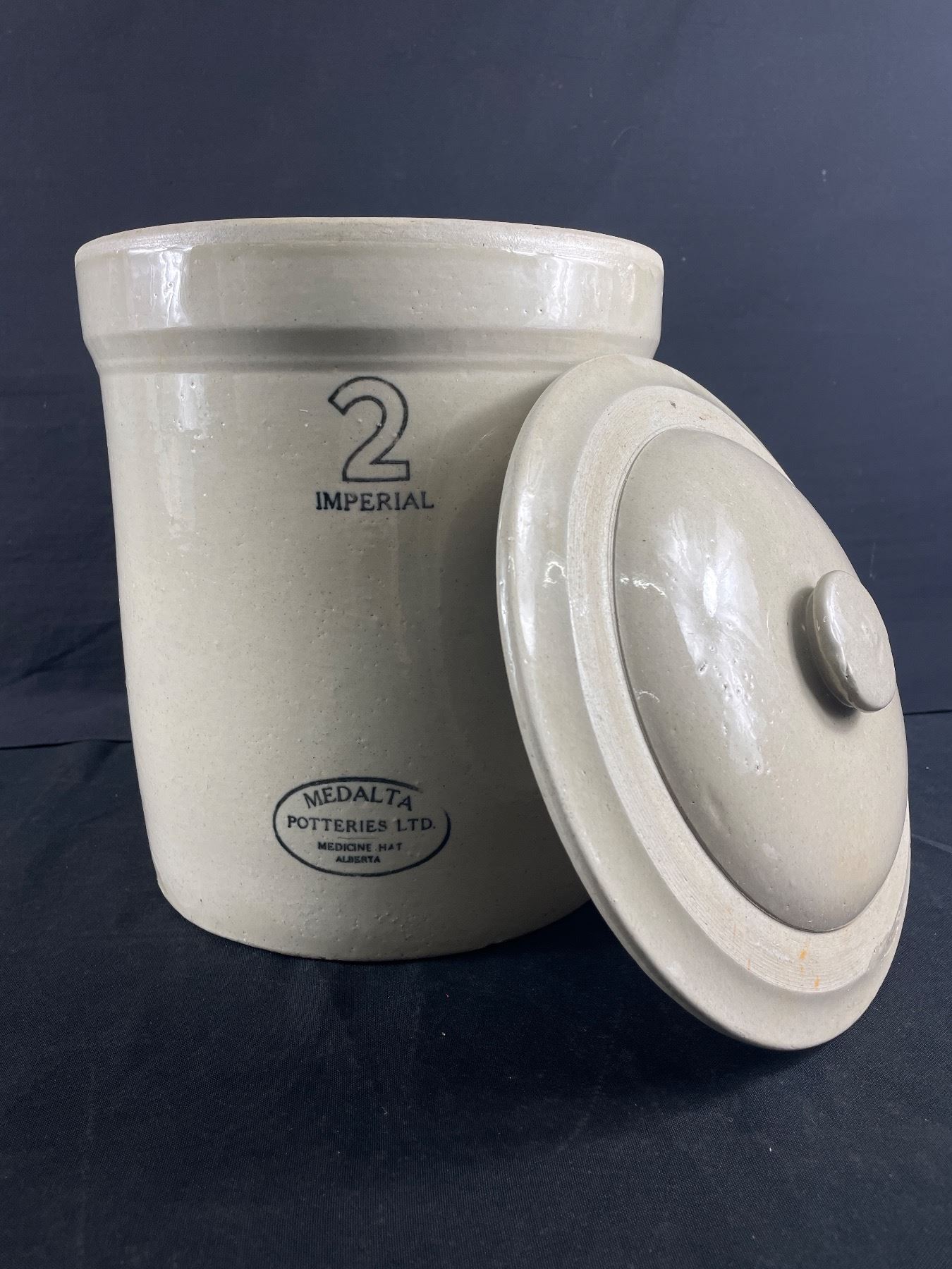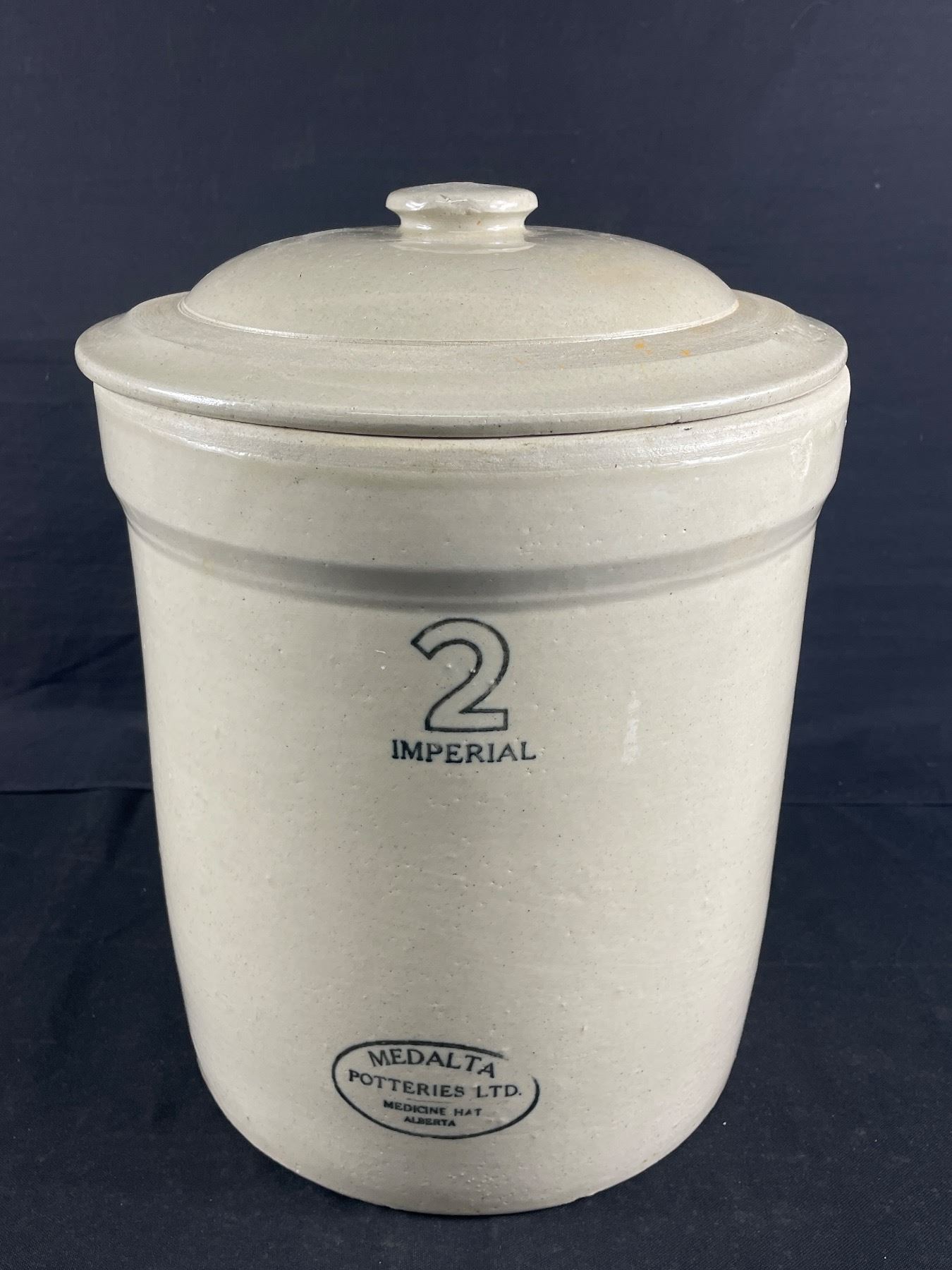 Vintage Medalta Potteries No.2 Imperial Stoneware Pot w/ Lid. NO SHIPPING Approx. 12.5"H