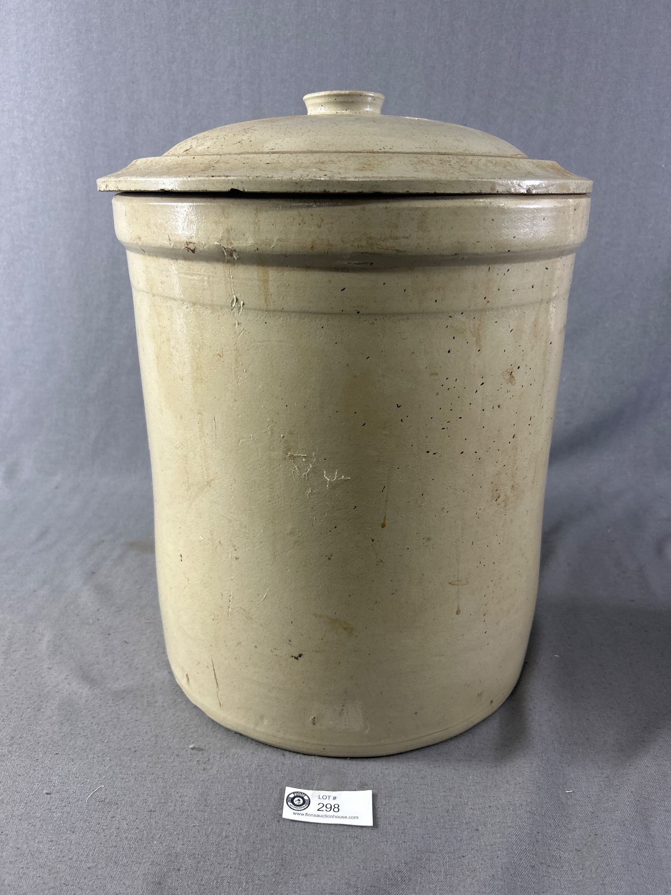 Vintage Medalta Stoneware 8 Gallon Crock Pot. Small chip on lid. NO SHIPPING. Approx. 15.5"H
