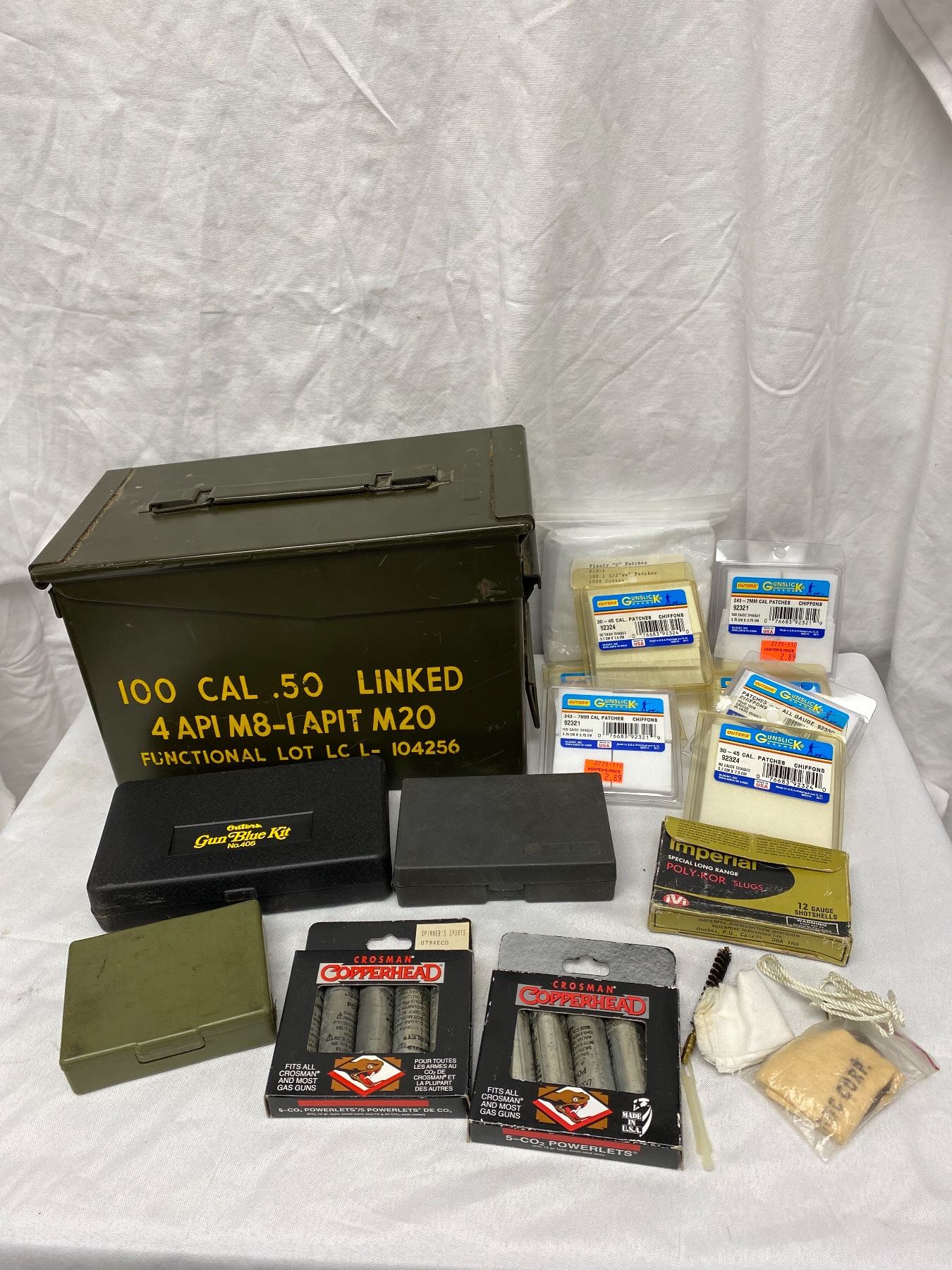 Vintage Metal Ammo Box Full of Gun Cleaning Supplies