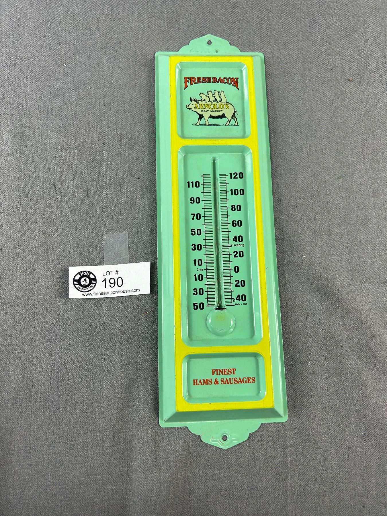 Vintage Metal 'Arnolds Meat Market' "Fresh Balon" Thermometer, Approx 3.75" x 13.75" No Glass