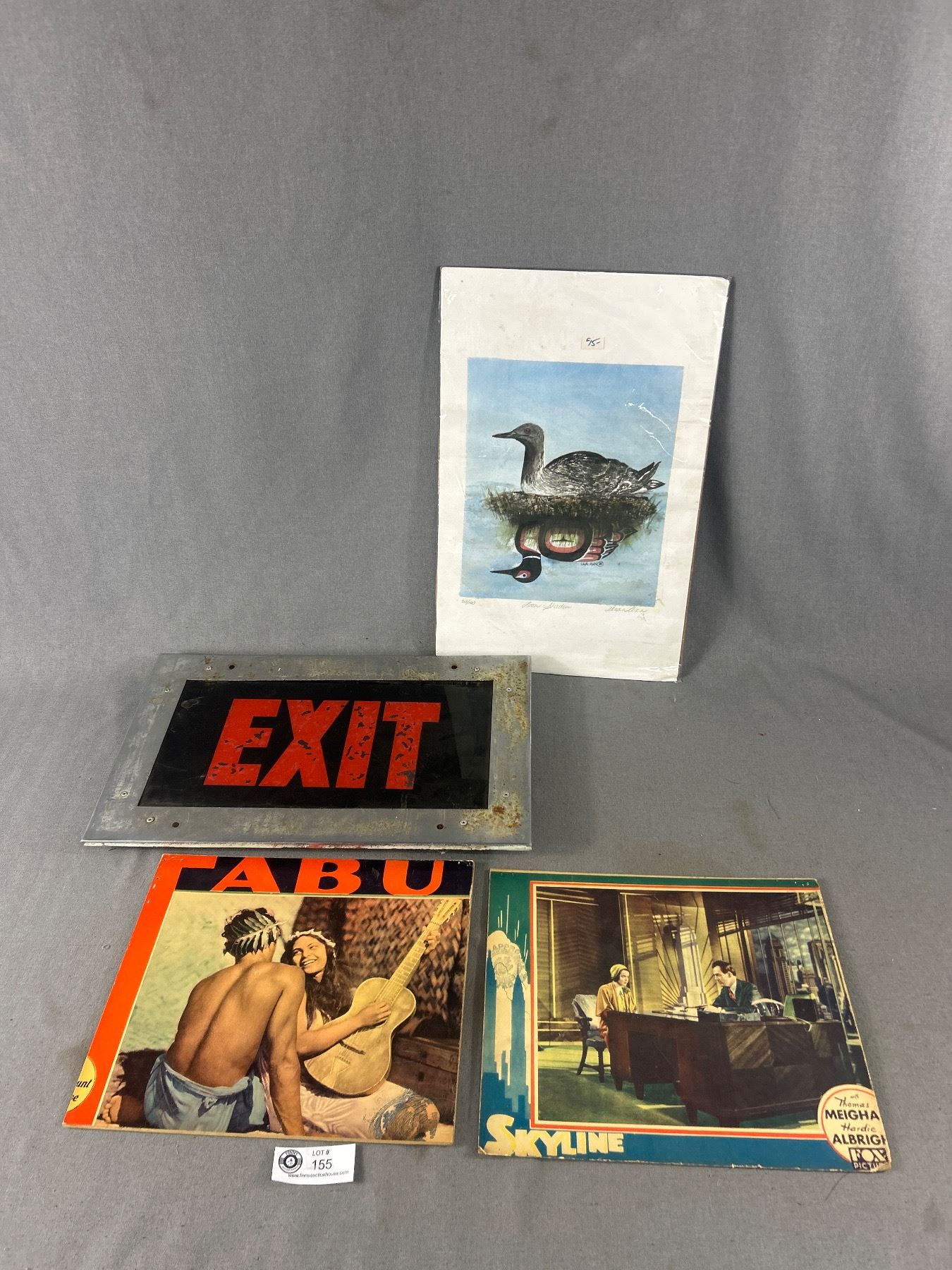 Vintage Metal Framed Exit Sign (Approx. 10.25" x 17") Ltd Ed. 52/100 Loon Shadow Print & More