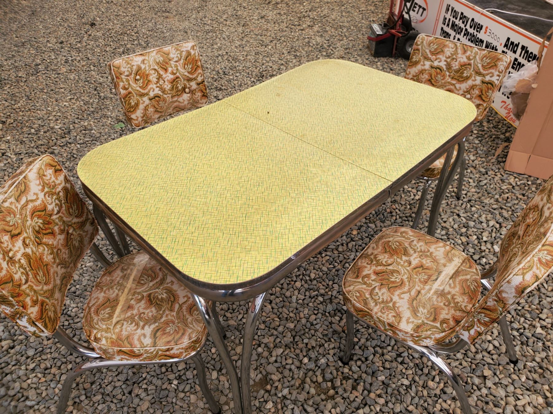 Vintage Metal Kithen Table & 4 Chairs - 17% Buyer Fee. Payment Processed through Live Auction World ( Visa or Master Card ) pick up Saturday, or Tuesday