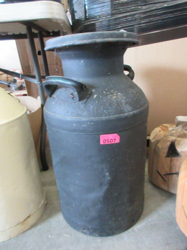 Vintage Metal Milk Can with Lid - 13  x 24  tall
