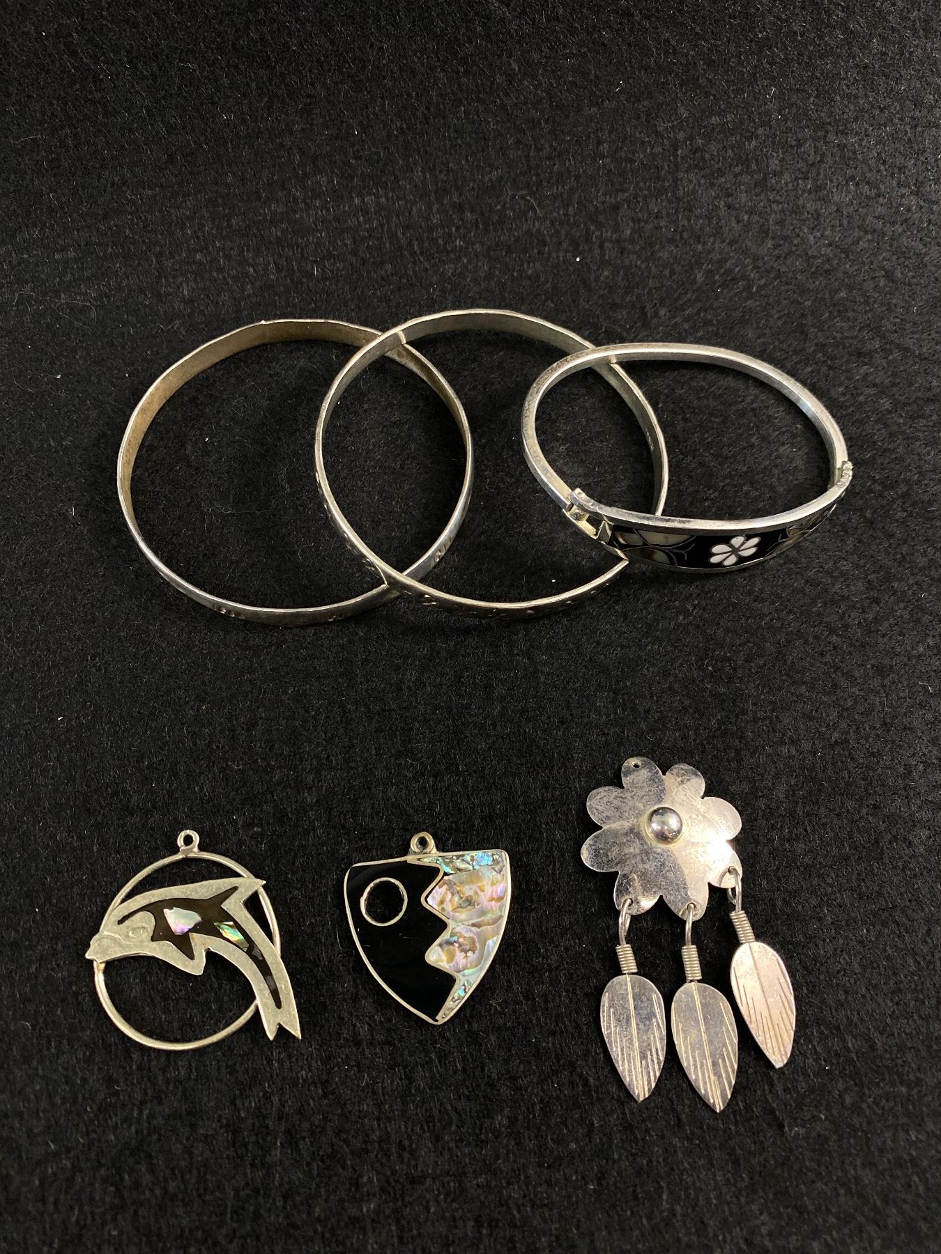 Vintage Mexican Silver Bracelets & Pendants - Some w/Abalone Accents