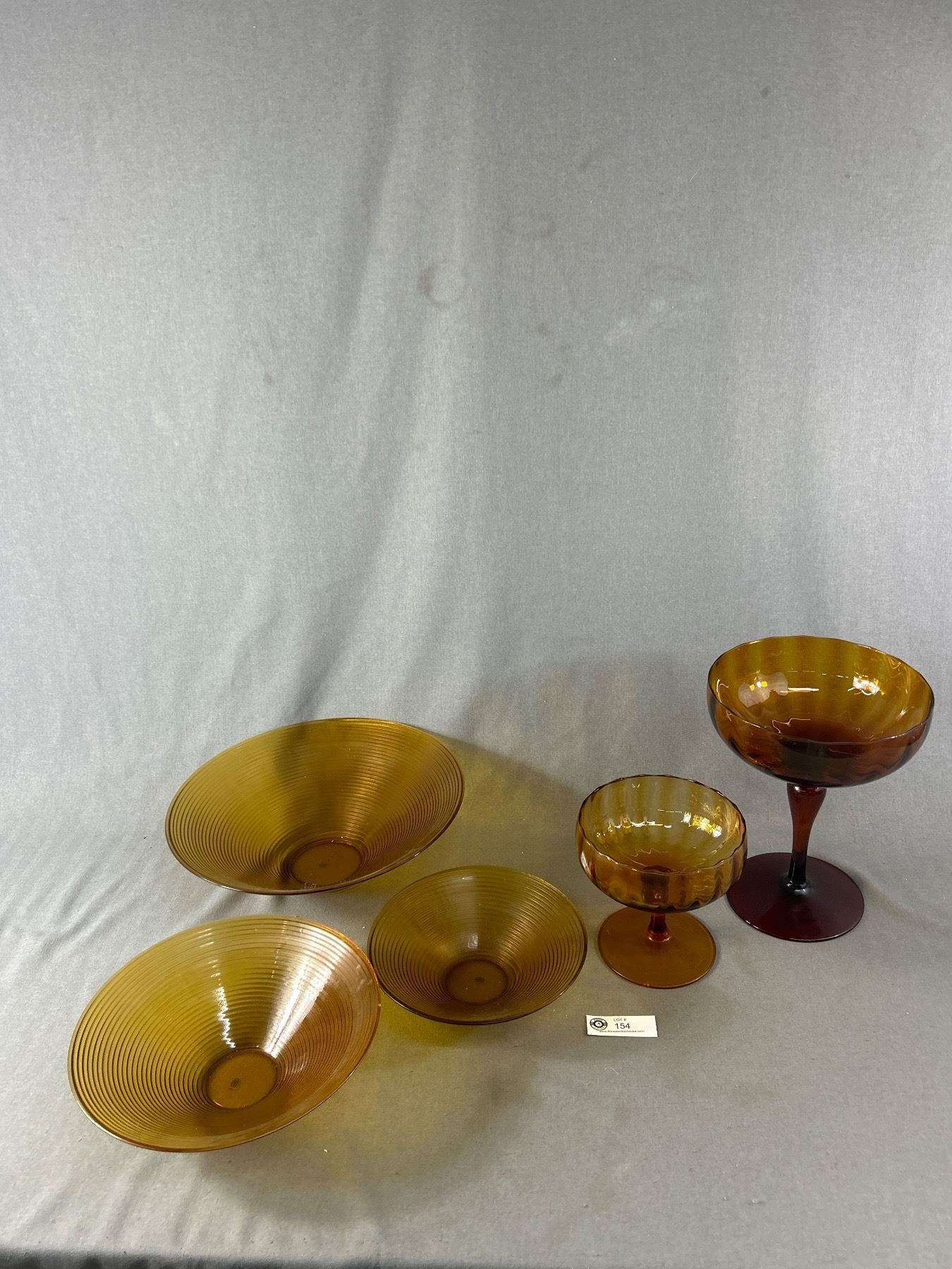 Vintage Mid Century Amber Glass Bowls and Goblets. NO SHIPPING.