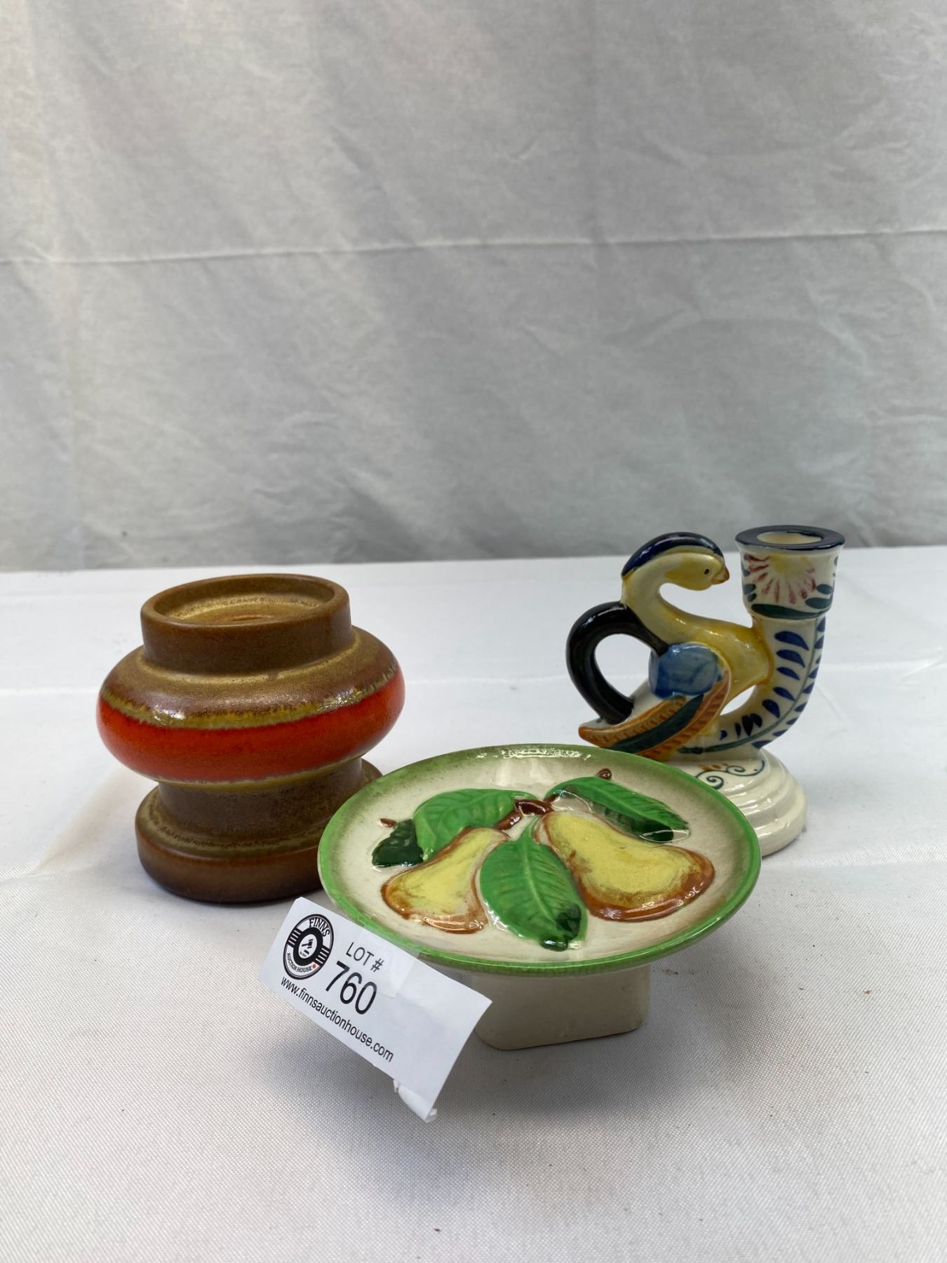 Vintage Mid Century Modern Collectible Lot, Hand Painted Candle Stick Holders And Occupied Japan Wall Pocket