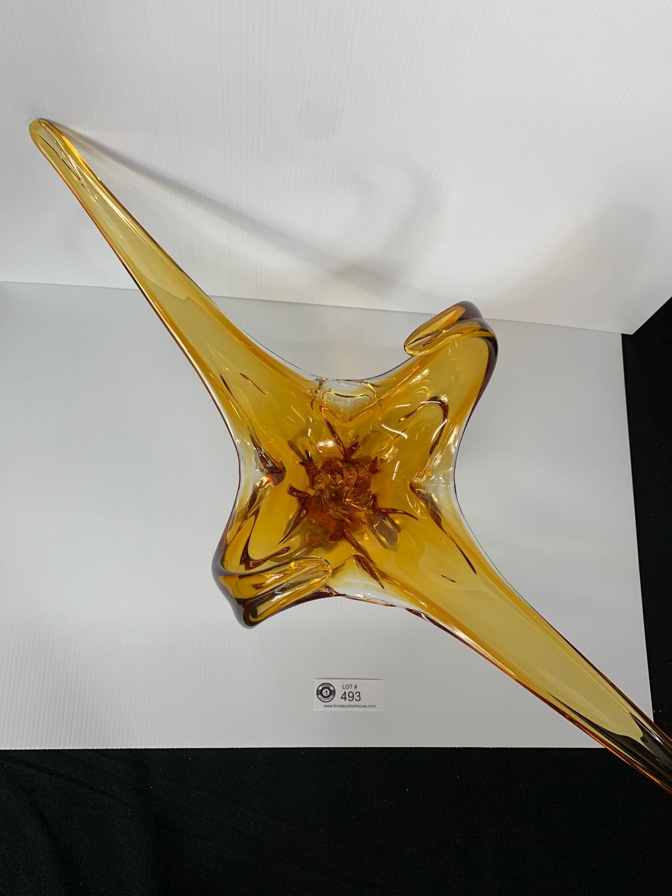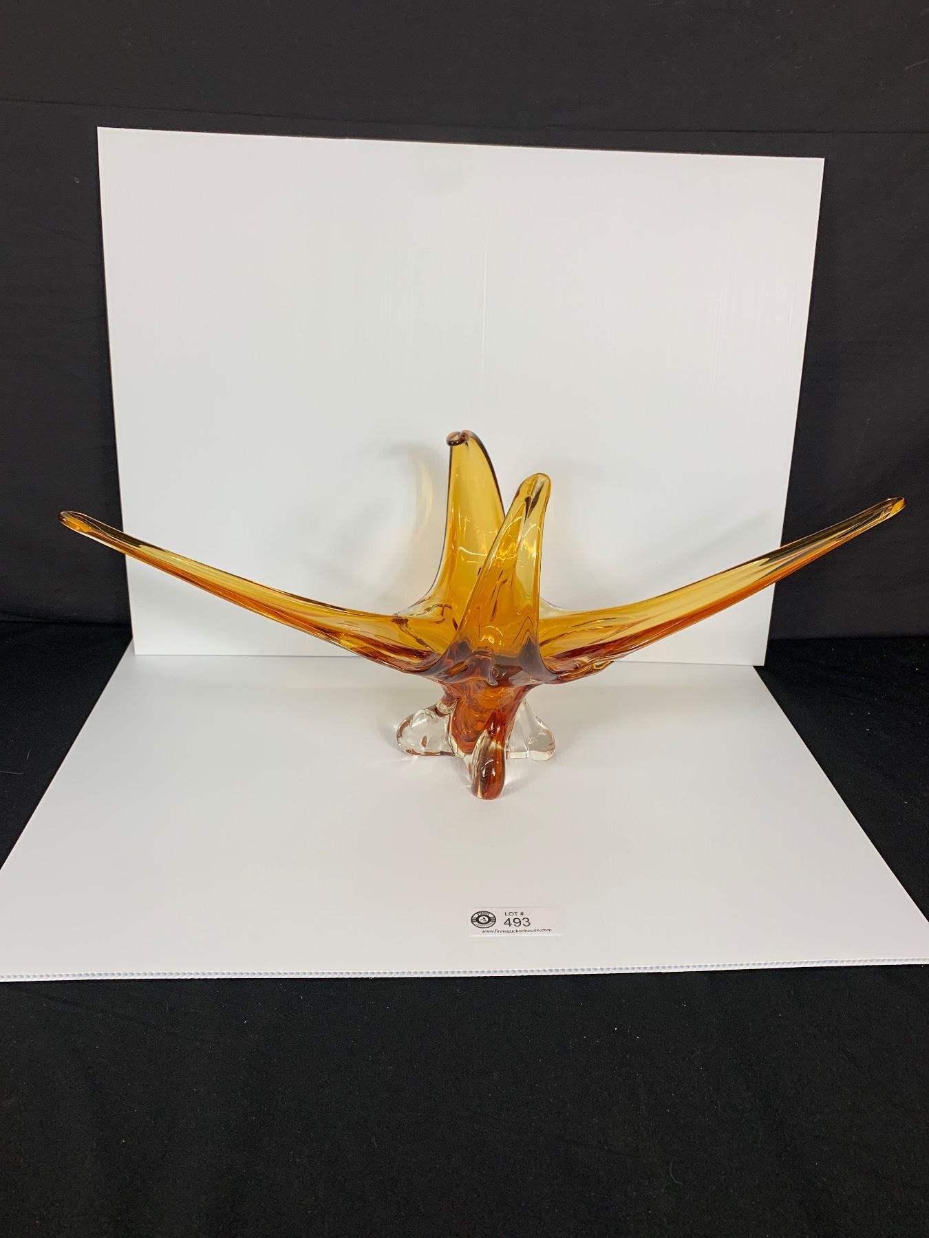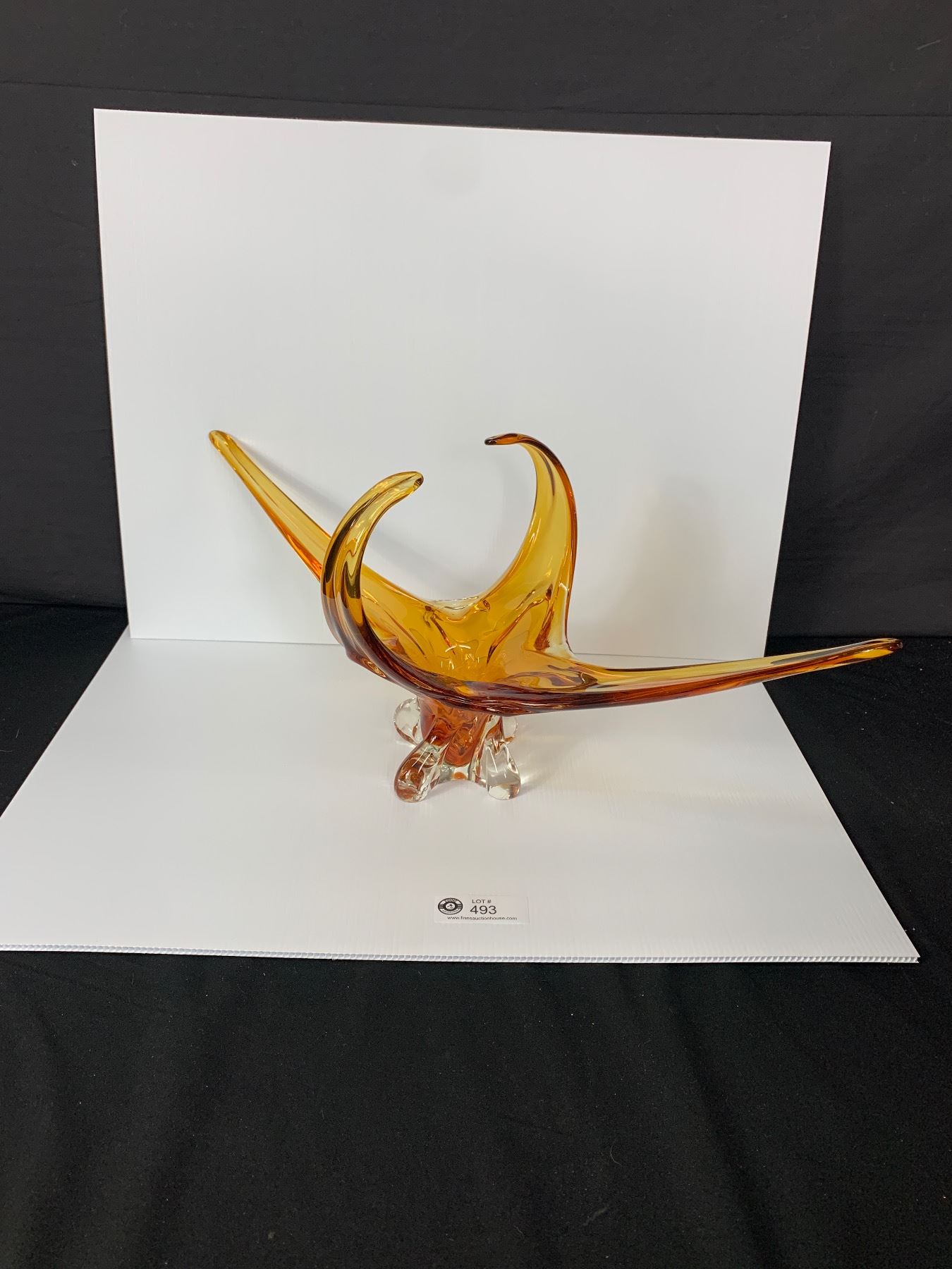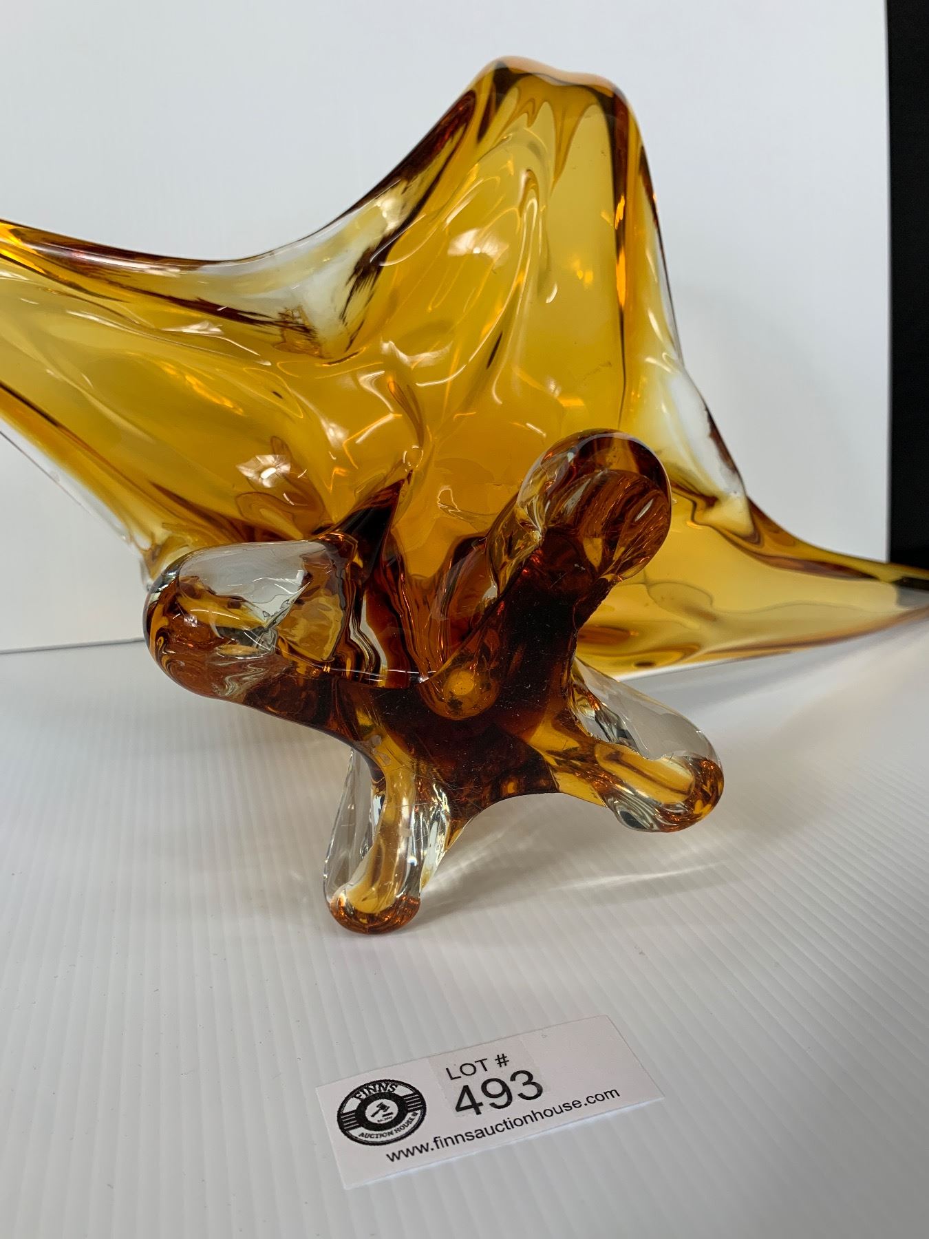 Vintage Mid Century Modern Stretched Bowl. Unsigned Chalet Glass