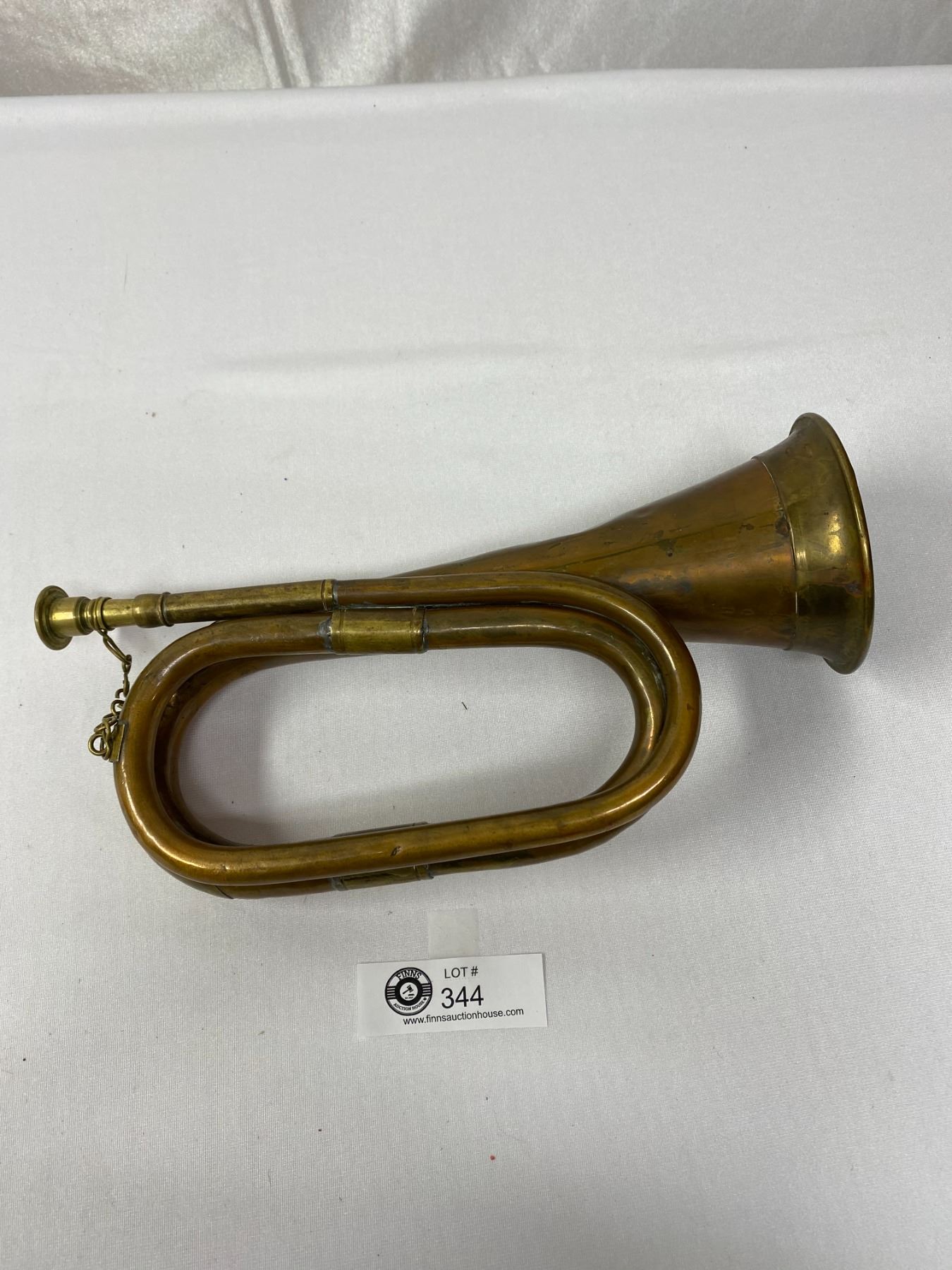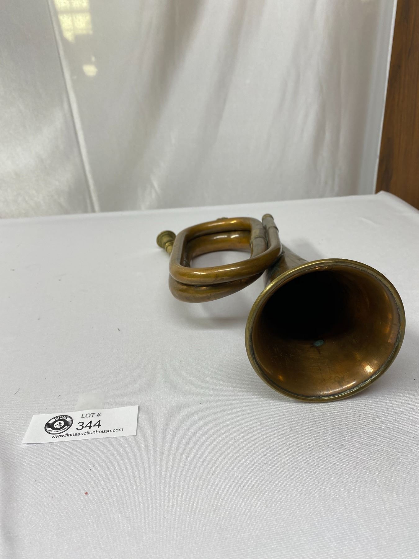 Vintage Military Copper And Brass Bugle With Mouth Piece
