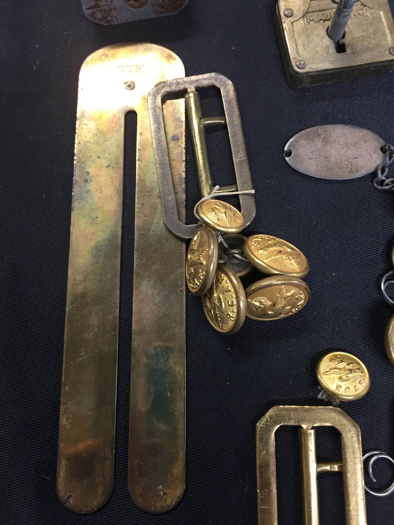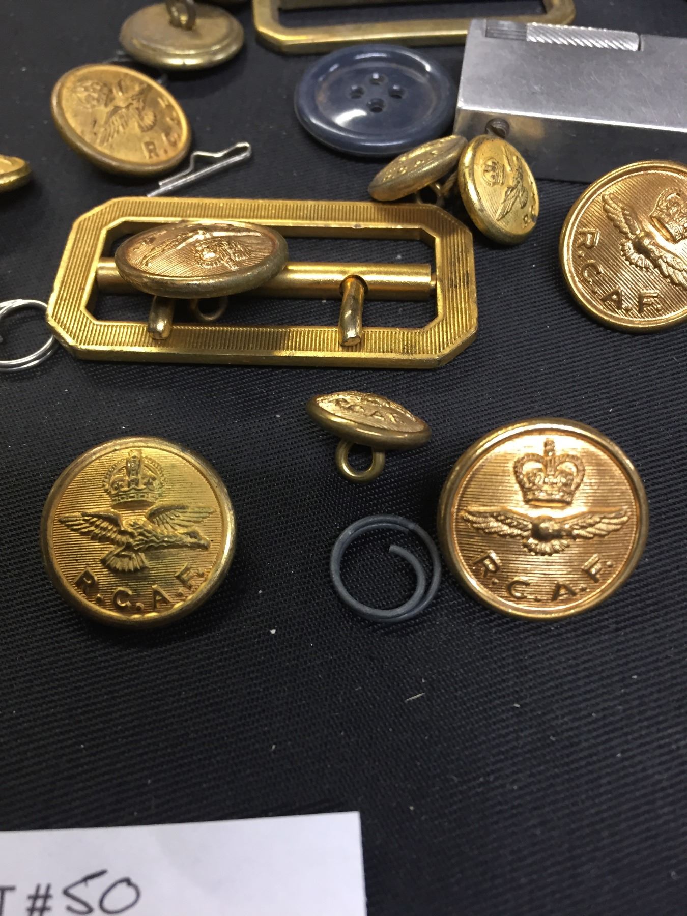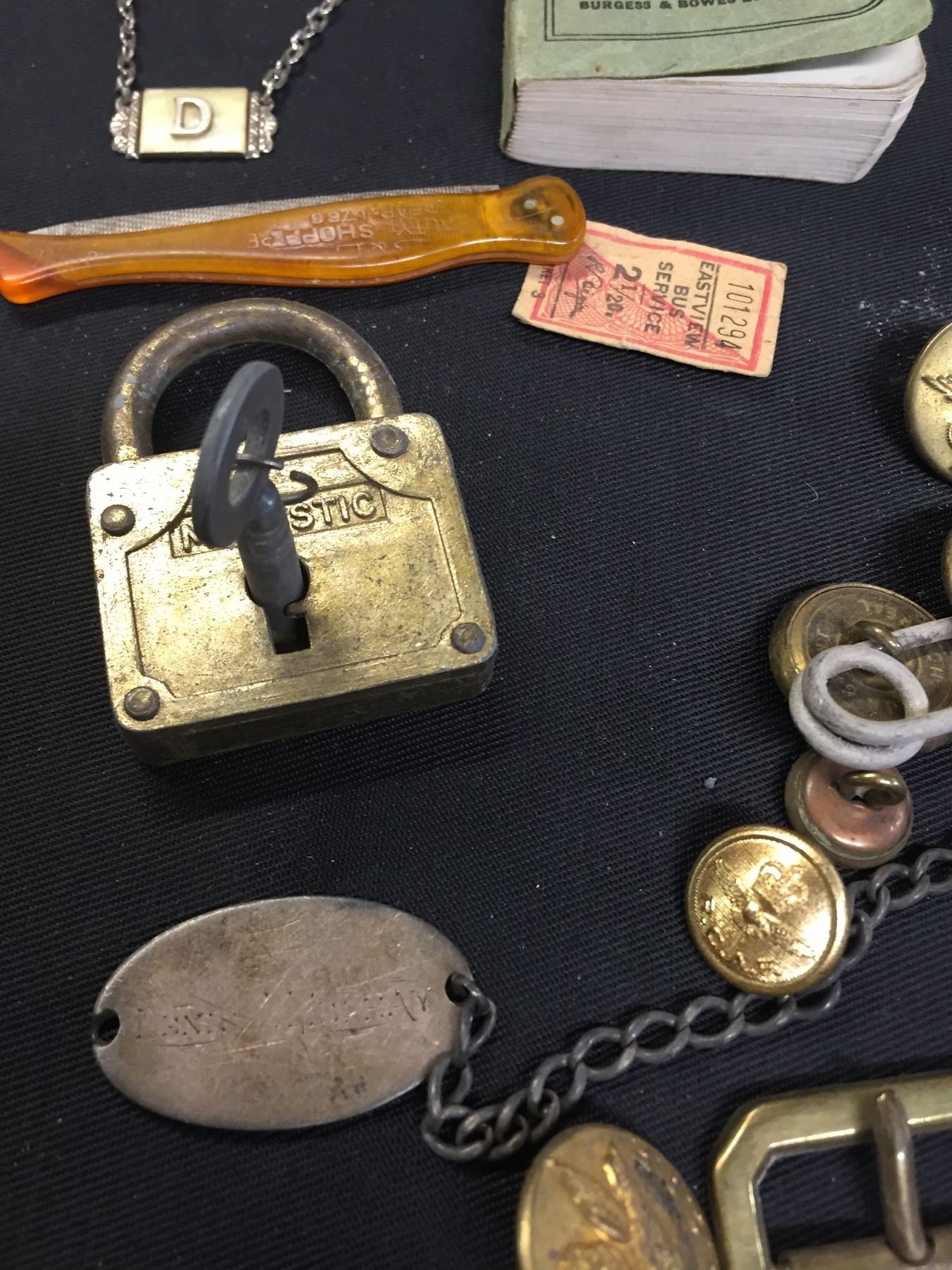 Vintage Military Lot of Buttons, Ration Coupons, Locks, Tie Clips Etc