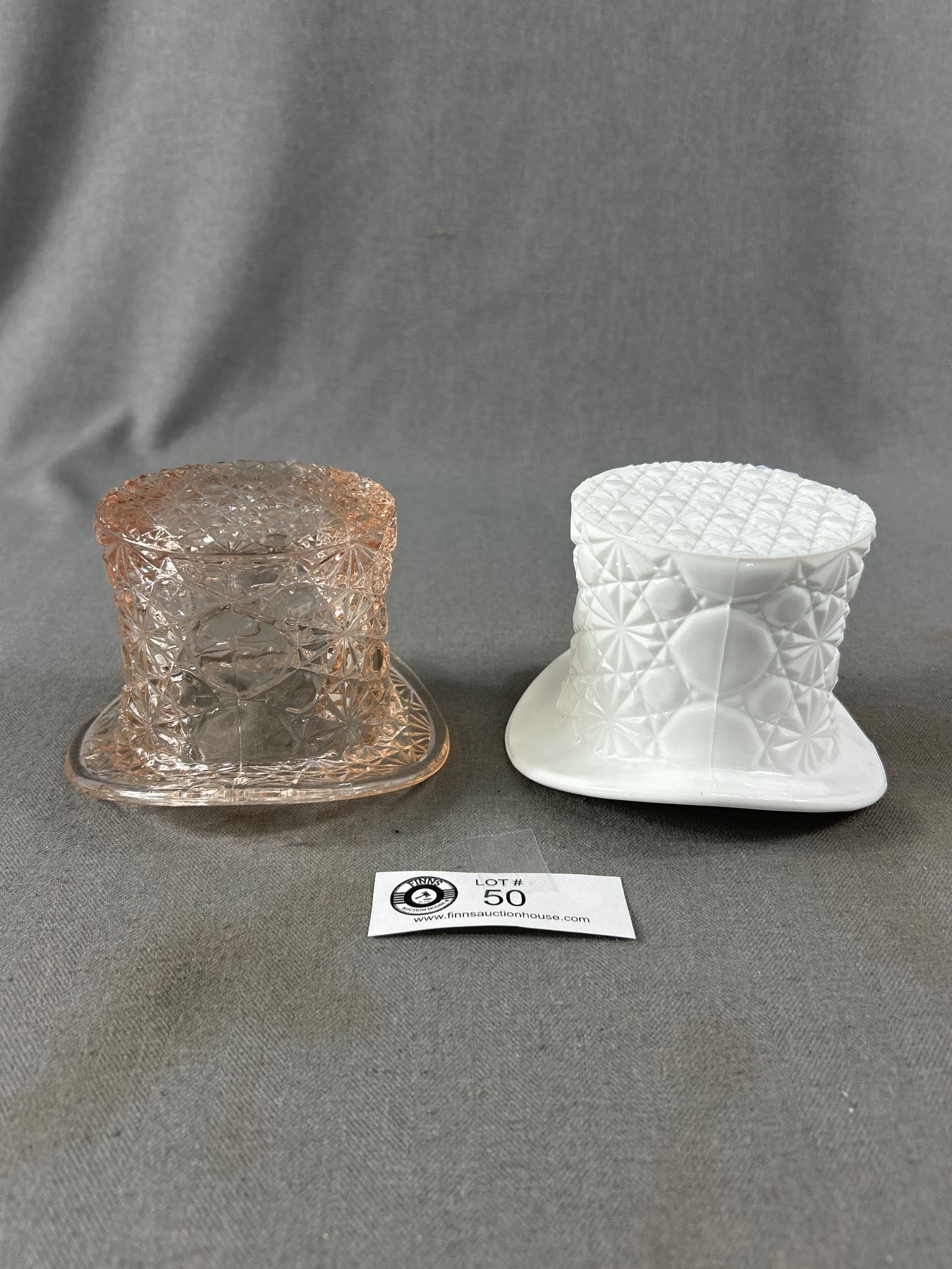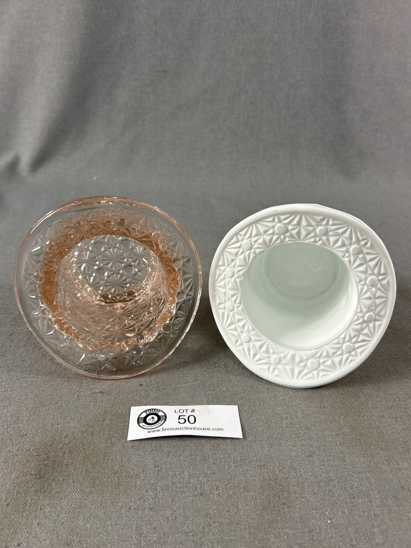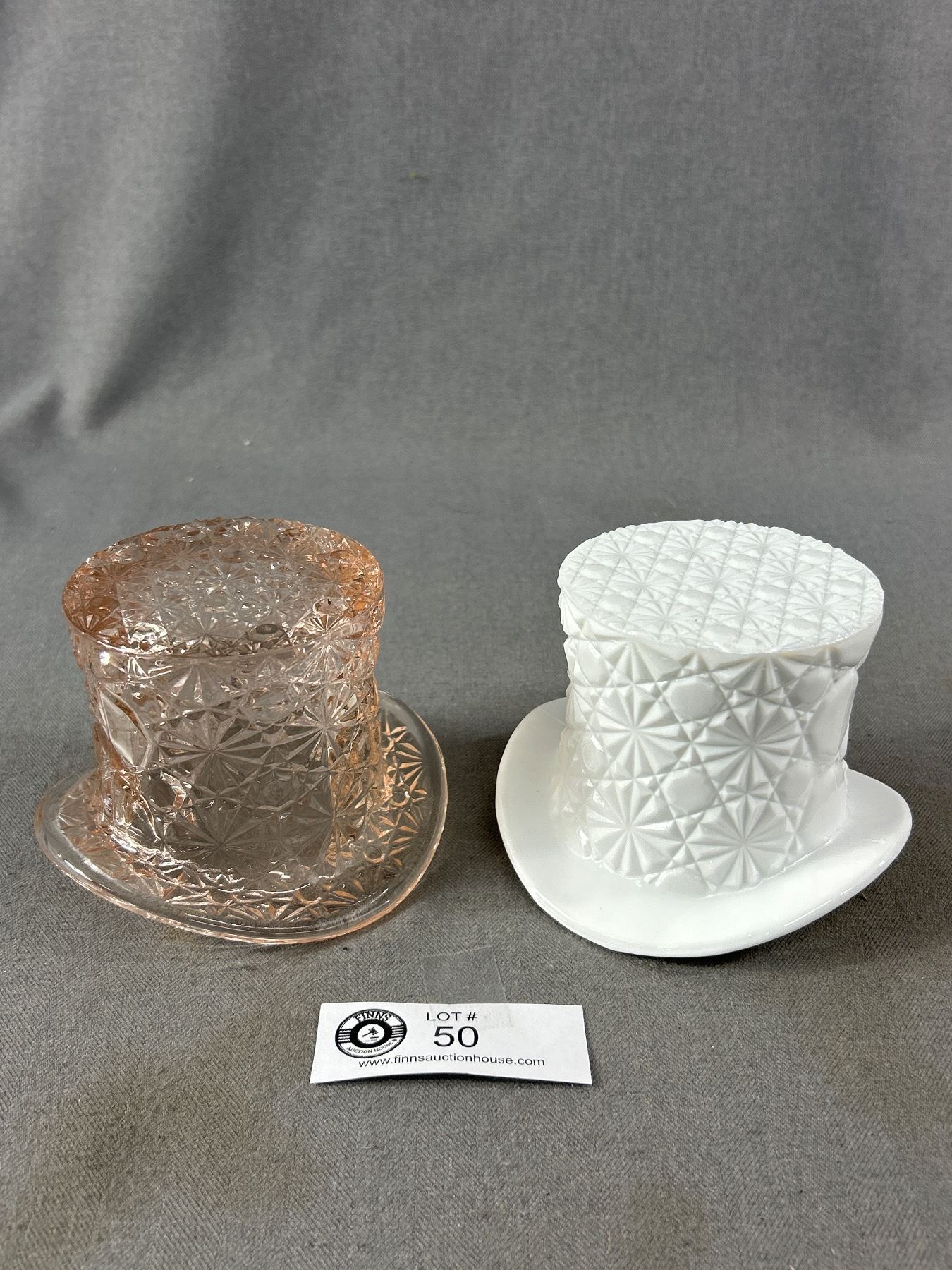 Vintage Milk Glass and Pink Depresion Glass Top Hats - Buton and Daisy Pattern
