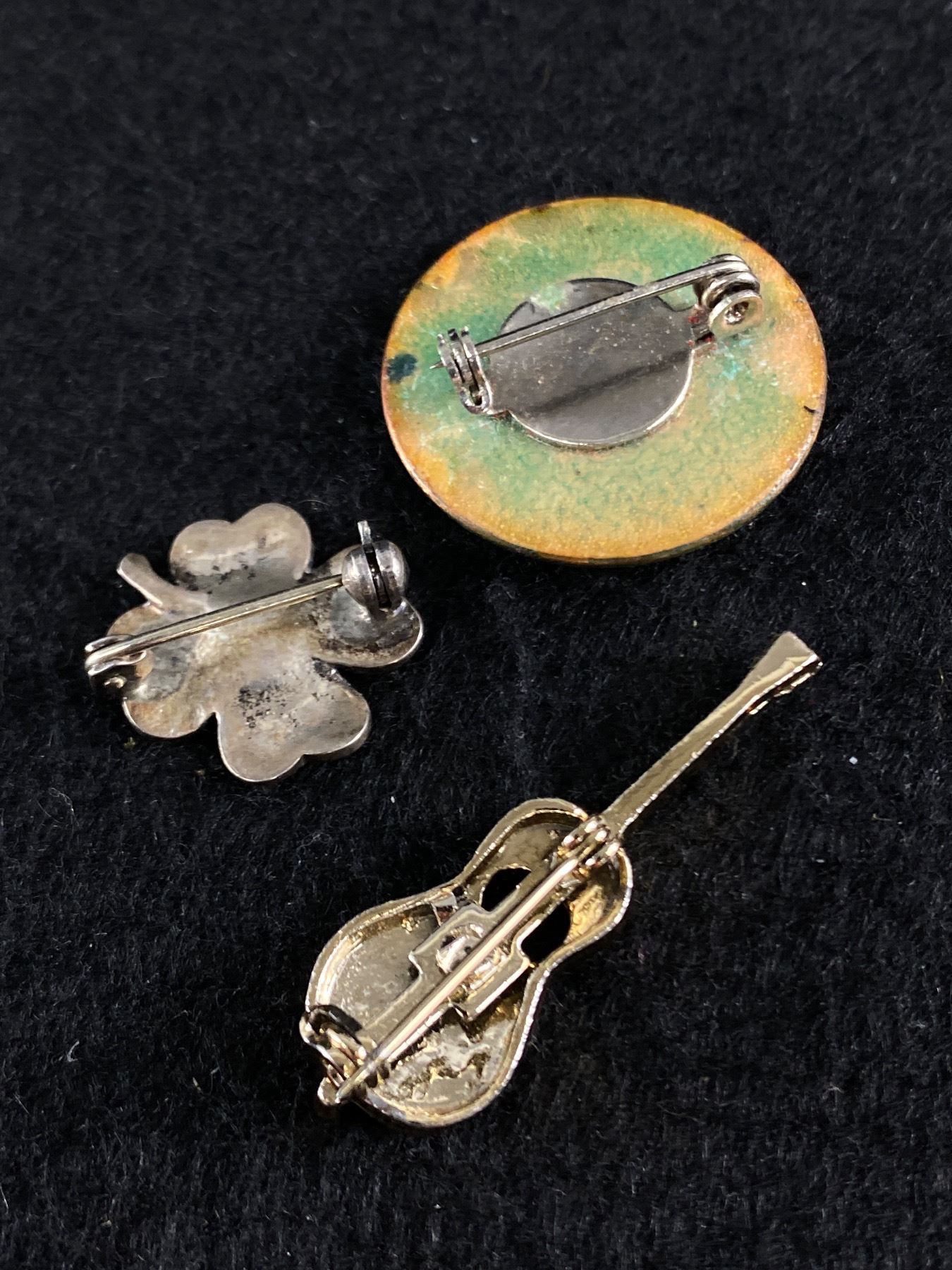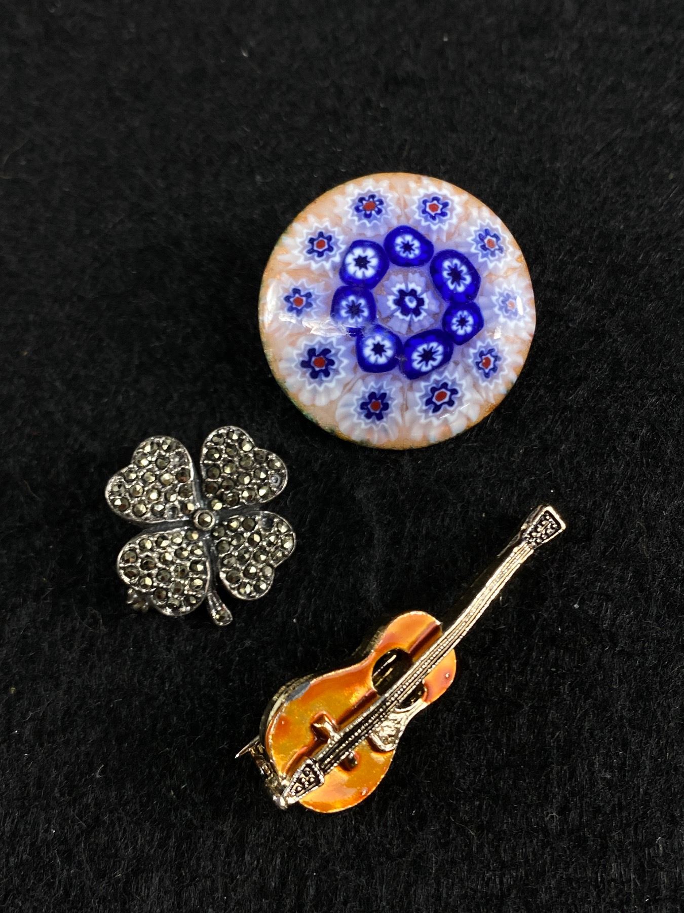 Vintage Milleflori ,Violin & Marcasite Flower Brooches