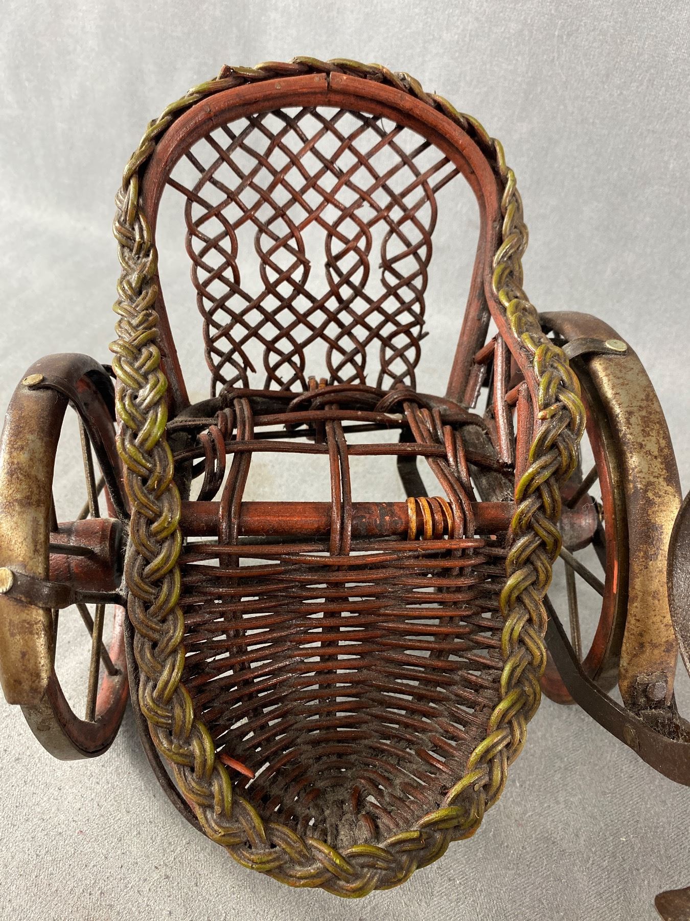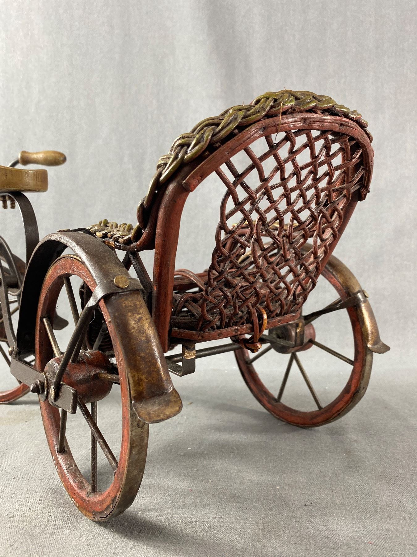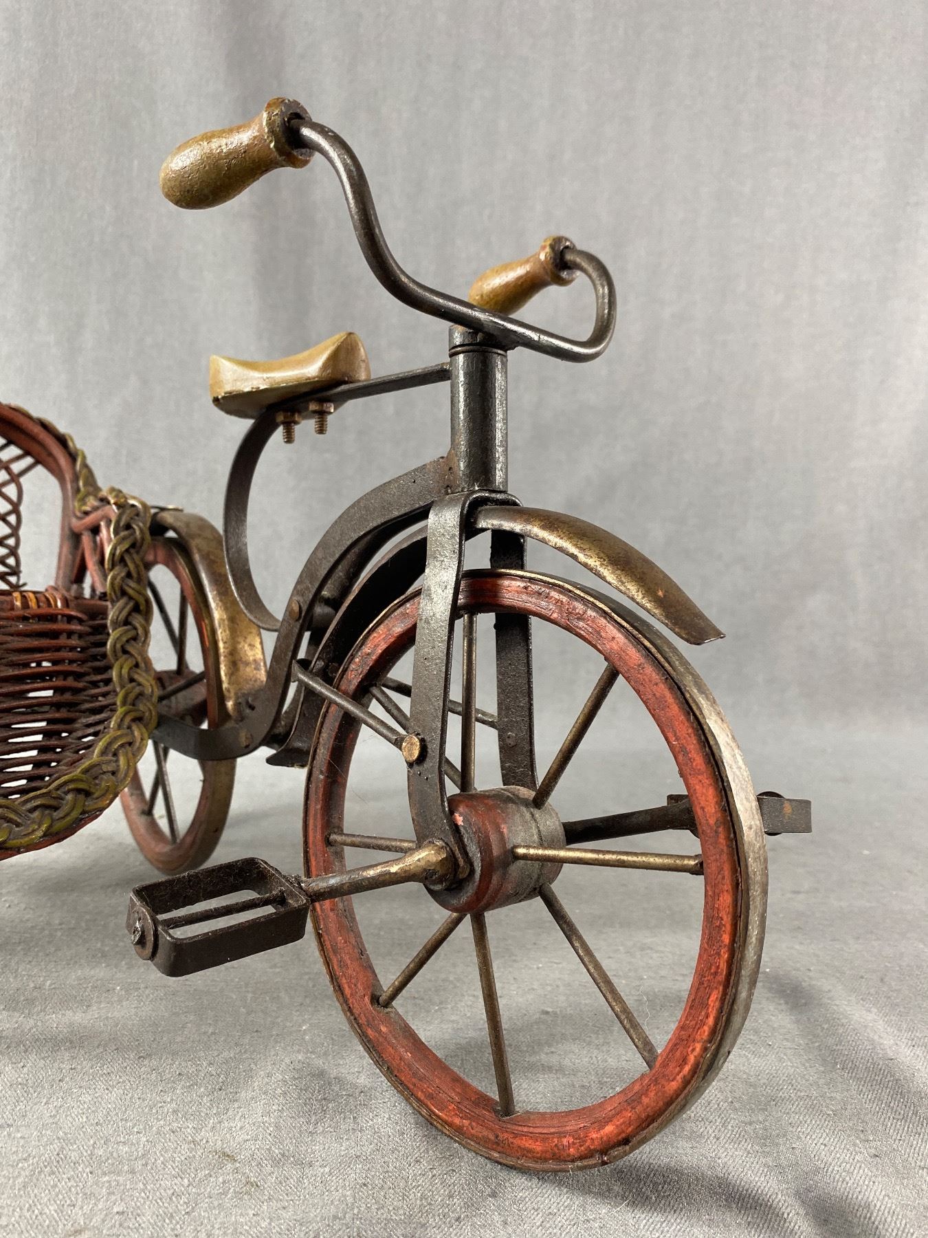 Vintage Miniature Cast Bicycle w/ Rattan Side Car - 17" L x 10" H
