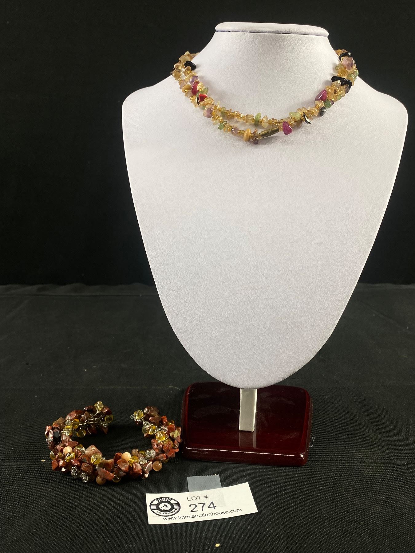 Vintage Miscellaneous Tumbled Gemstones Necklace Both Ends Slightly Loose,but Wearable 29" L