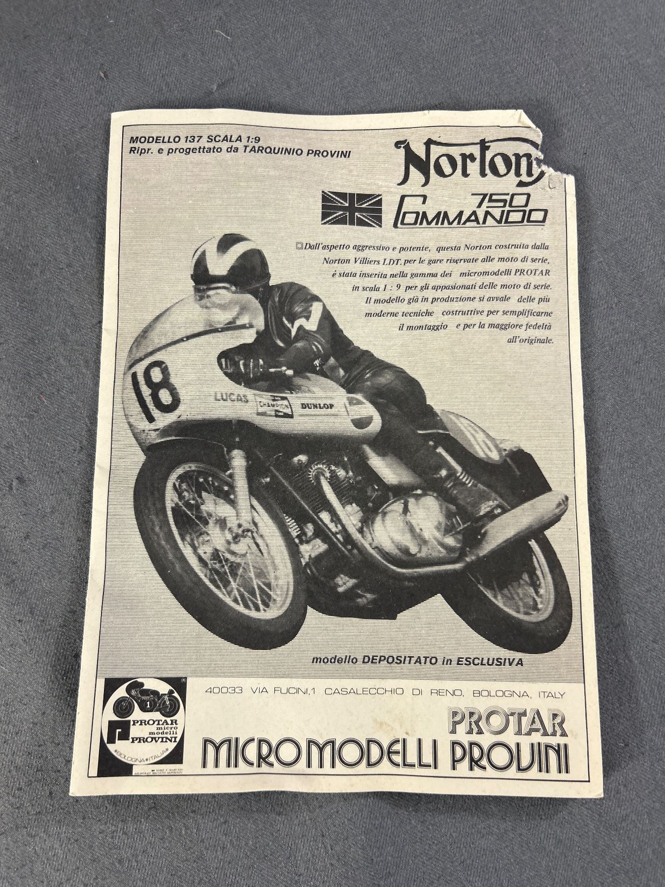 Vintage Modeling Kit - Norton 1:9 Scale 750 Commando Motor Cycle Made In Italy