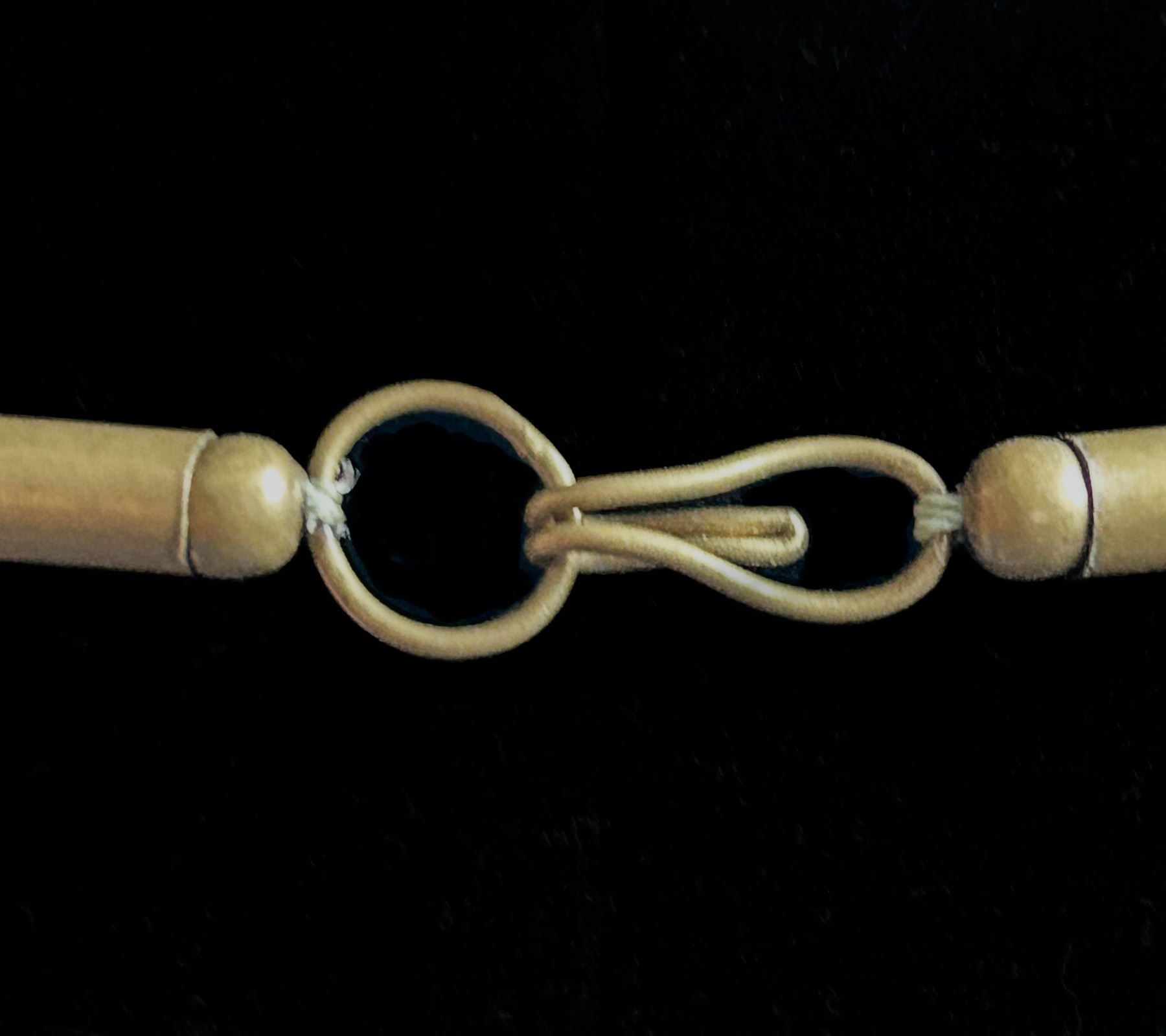 Vintage necklace featuring graduated stacked metal disc beads in alternating brushed copper and gunmetal tones. Heishi-inspired construction with a brass-toned barrel and hook clasp. Unmarked. Likely 1970s to early 1980s