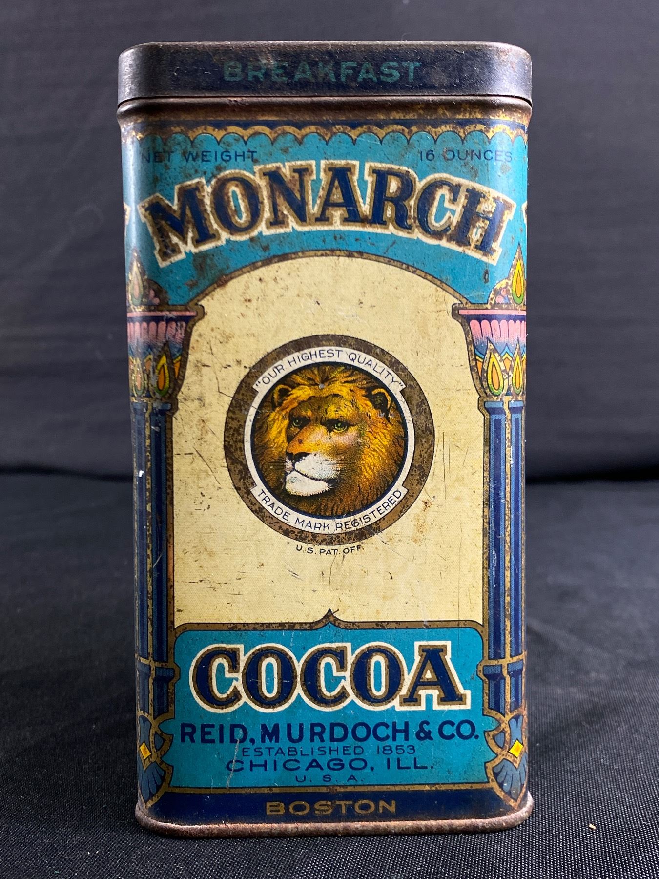 Vintage Monarch Cocoa Tin w/ Lion Graphics, From Reid Murdoch & Co, Chicago, Ill.