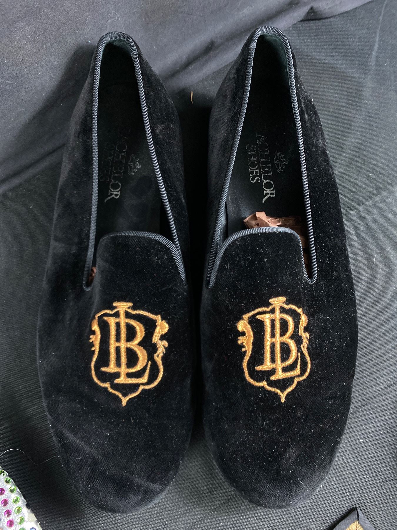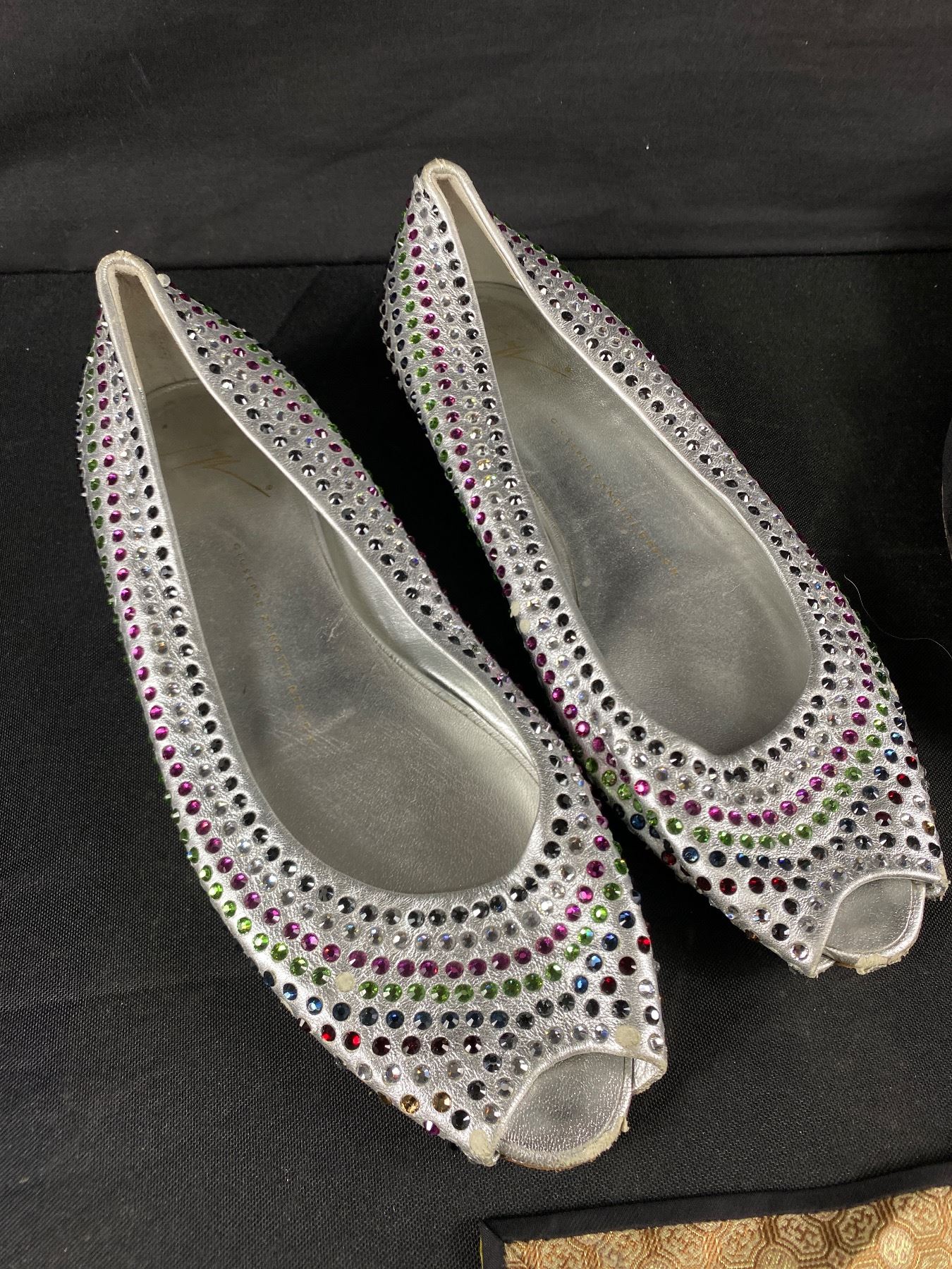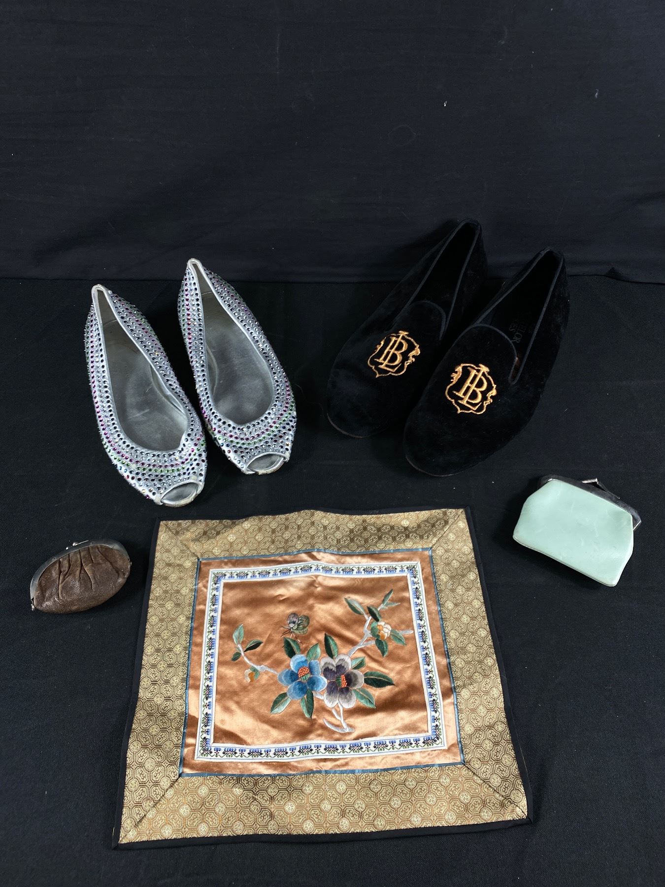 Vintage Monogrammed B/L 11.5" L Bachelor Slippers, Giuseppe Zanotti Desi Rhinestone Shoes. 10.5" L, Coin Purse & Asian Clorh