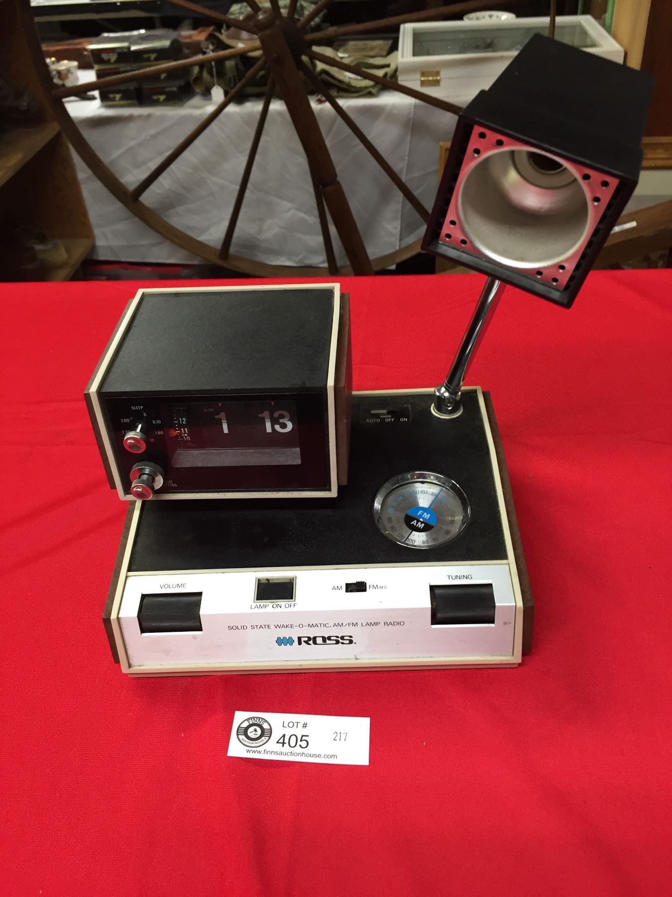 Vintage Morn. Solid State Wake O Matic AM/FM Lamp Radio Flip Clock. Works Needs Light Bulb Telescoping Handle. Made by Ross.