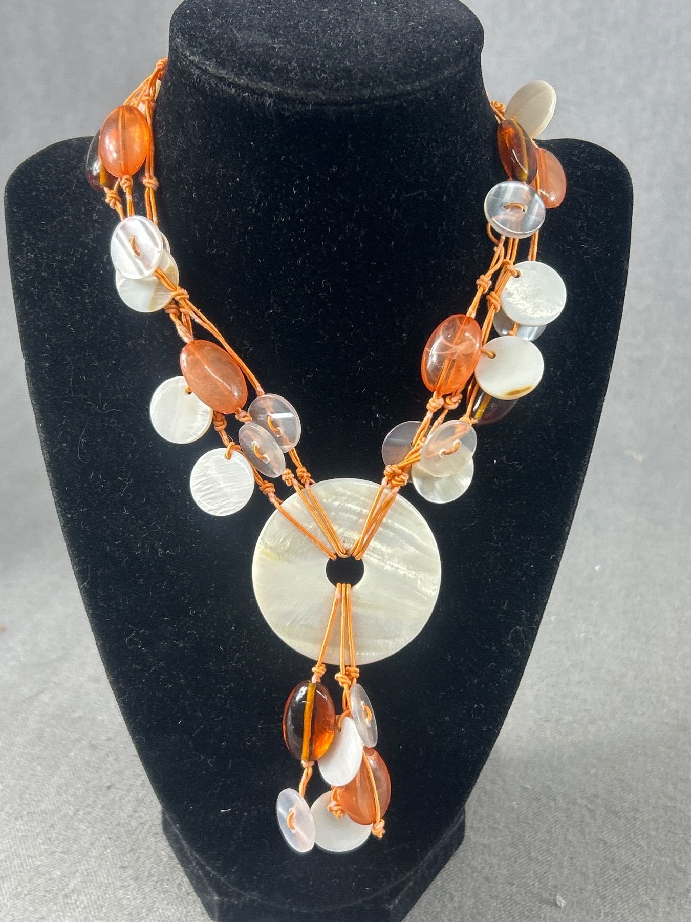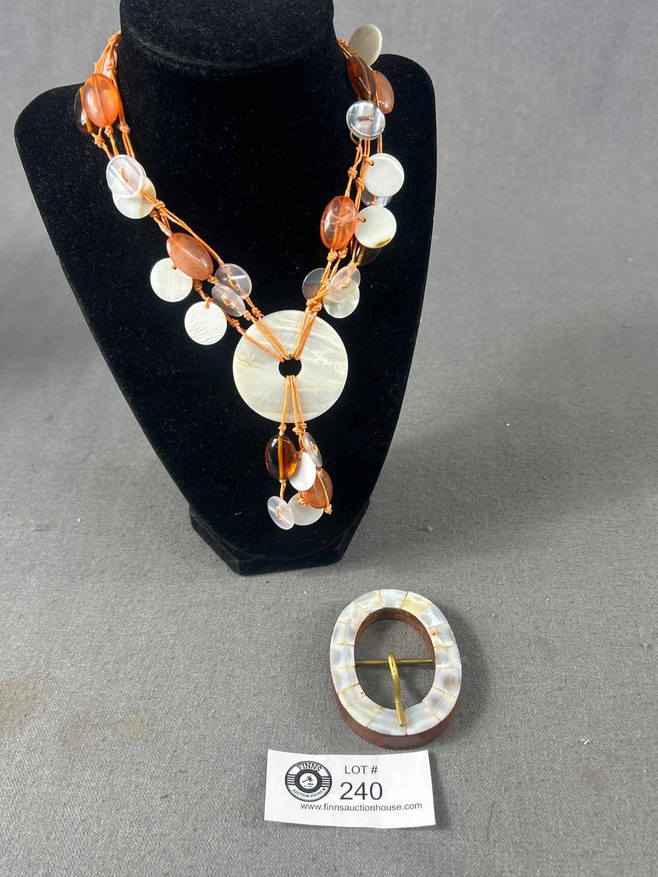 Vintage Mother Of Pearl Necklace & Belt Buckle