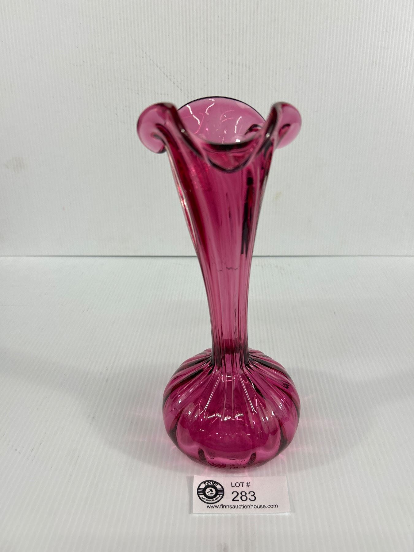 Vintage Mouth Blown Cranberry Glass Vase approx 9"T Good Condition. No chips, Cracks etc