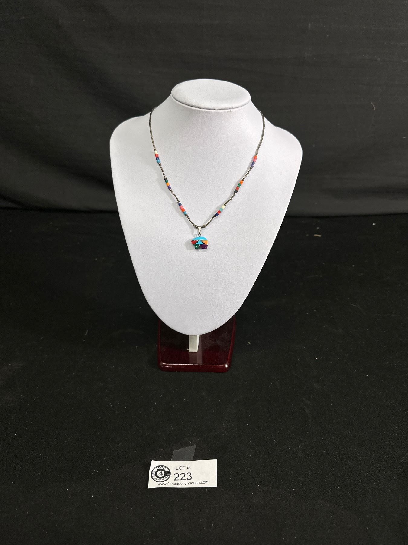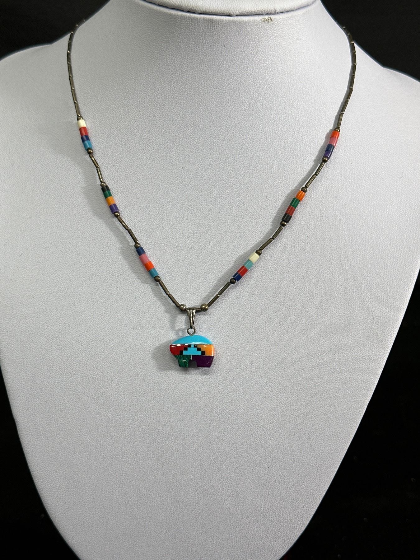 Vintage Natice American Zuni Hand Crafted Gem-stones Pendant Necklace