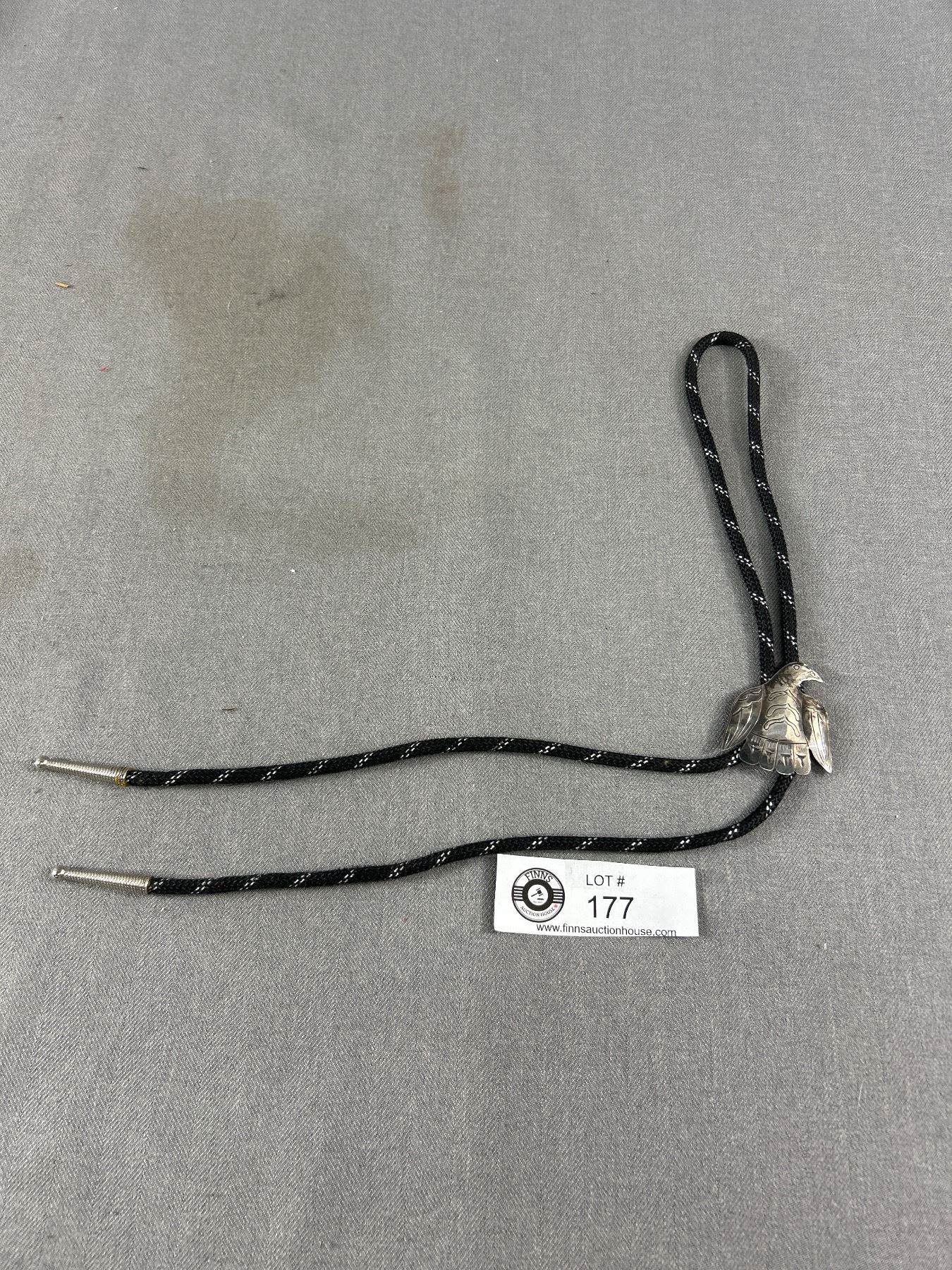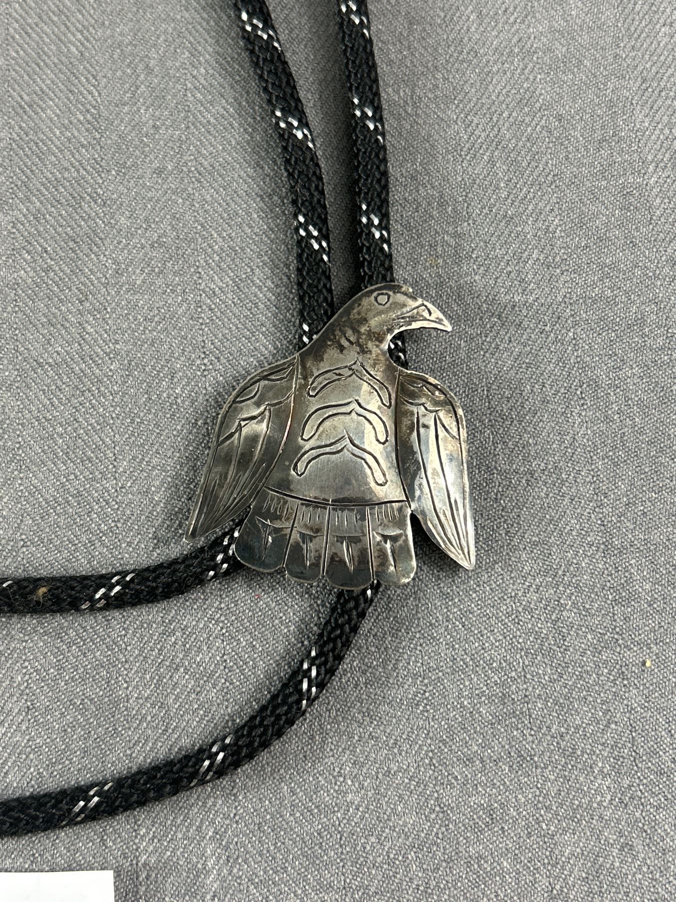 Vintage Native American Bolo Tie w/ Signed Sterling Carved Eagle Slide