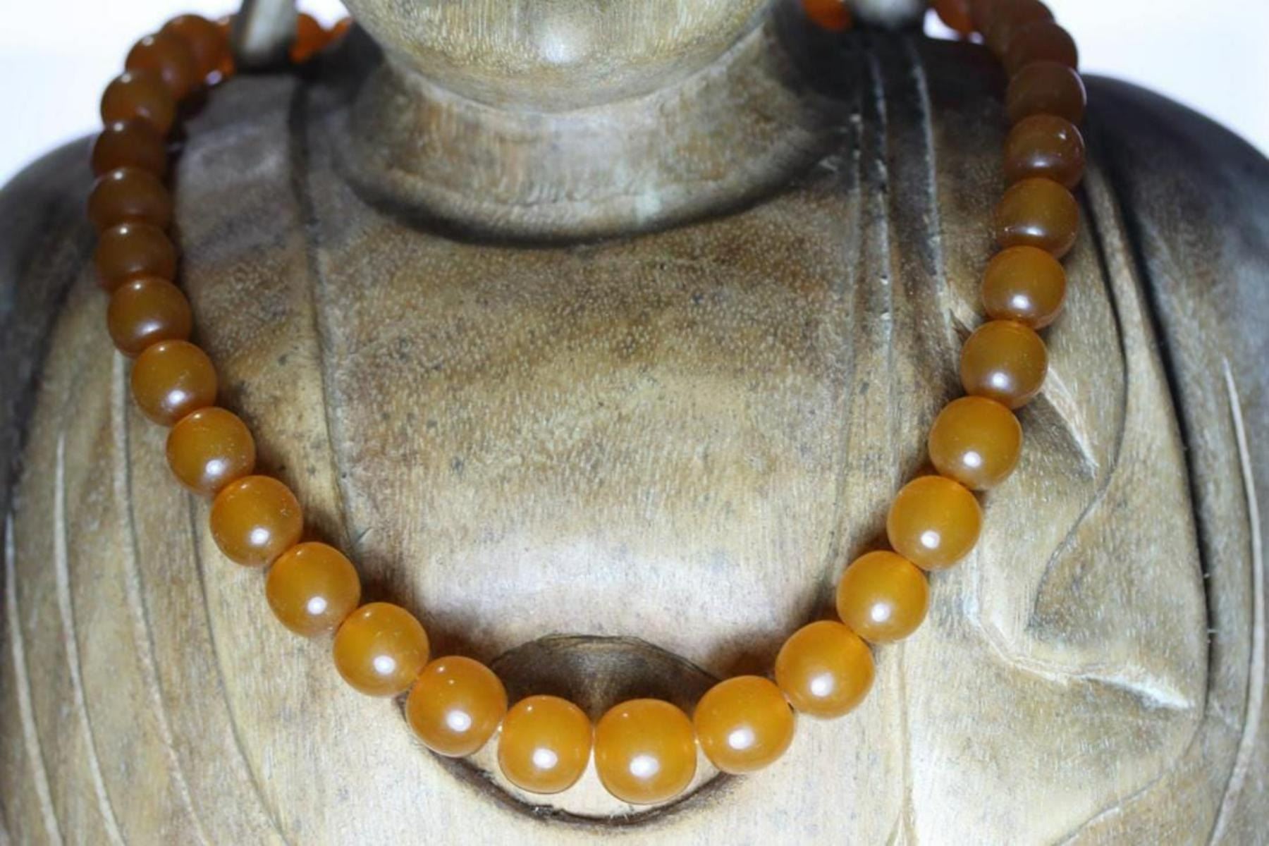 Vintage Natural Amber 39 Grams Necklace ; Baltic amber is fossil resin produced by pine trees which grew in Northern Europe about 40-50 million years ago. The resin was washed out of the forest floor by large rivers and transported south towards the sea. In the course of time the resin was transformed to amber due to processes of polymerization and oxidation. Baltic amber (known as succinite) is a specific subset of amber that is found only in northern Europe: it accounts for some 80% of the known amber in the world. Baltic amber has high concentrations of a unique substance known as succinic acid. Succinic acid has been shown to stimulate neural system recovery and bolster the immune system. As a powerful antioxidant it is said to help eliminate free radicals and discourages disruptions of the cardiac rhythm. It helps restore strength and energy to the entire body and enhances brain function, thereby improving awareness, concentration, reflexes, and reducing stress. Succinic acid is commercially produced, widely used and approved for use by the United States Food and Drug Administration. Baltic amber is naturally high in this substance, and is one of the most important natural sources of succinic acid in the world.