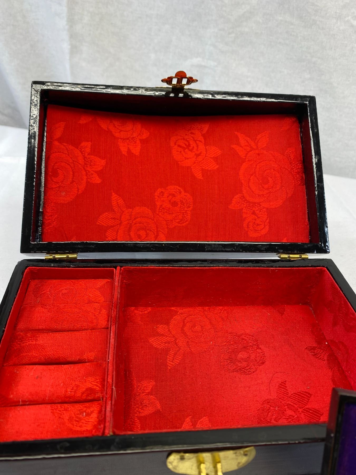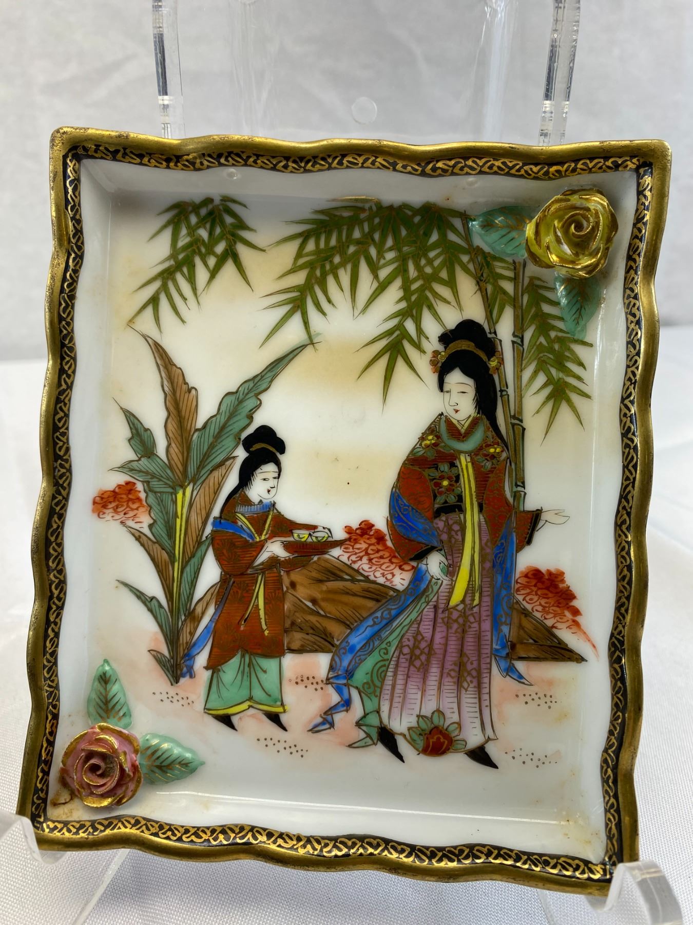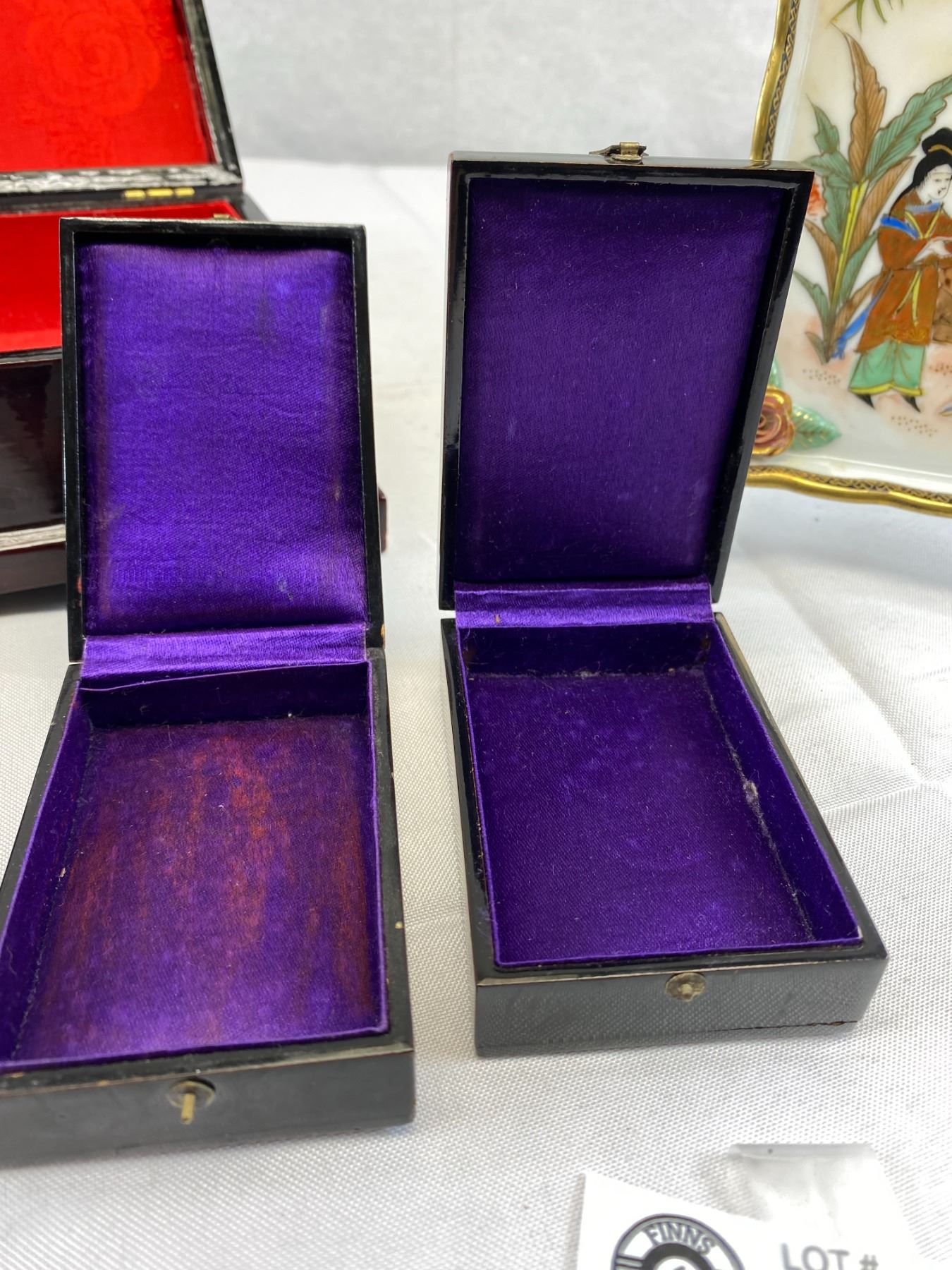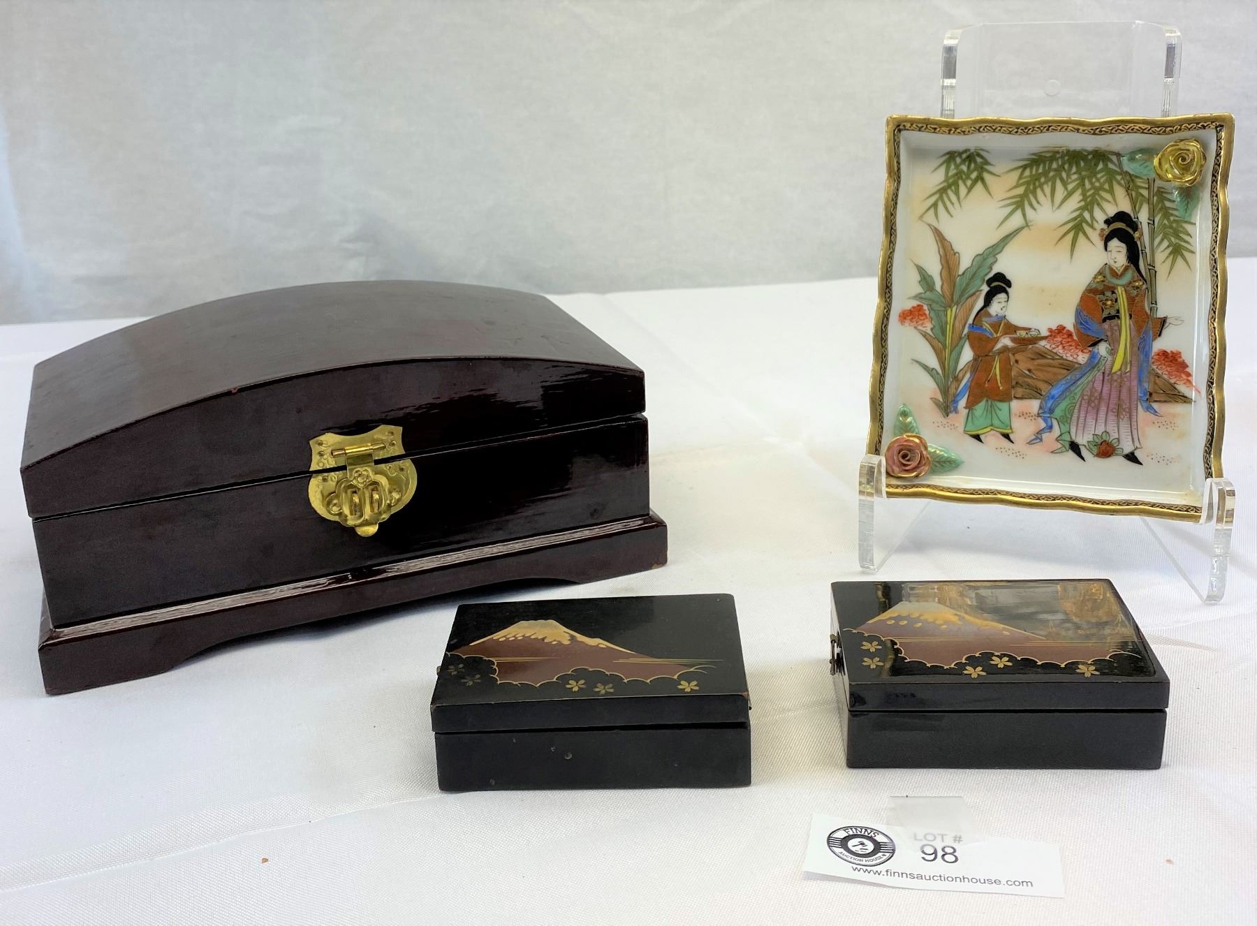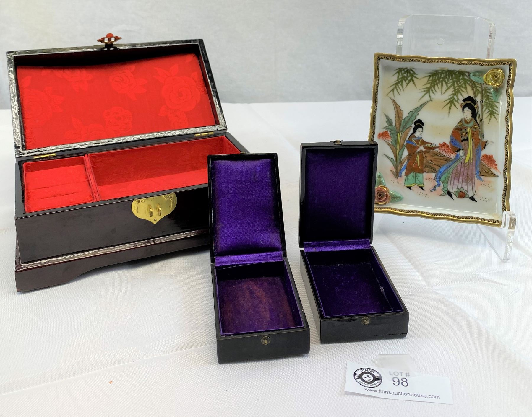 Vintage Occupied Japan Satsuma Tray, Minor Chips, And Lacquered Jewel Boxes With Silk Lining