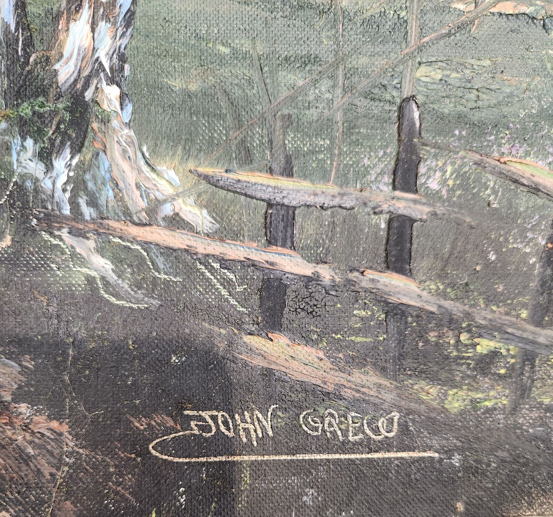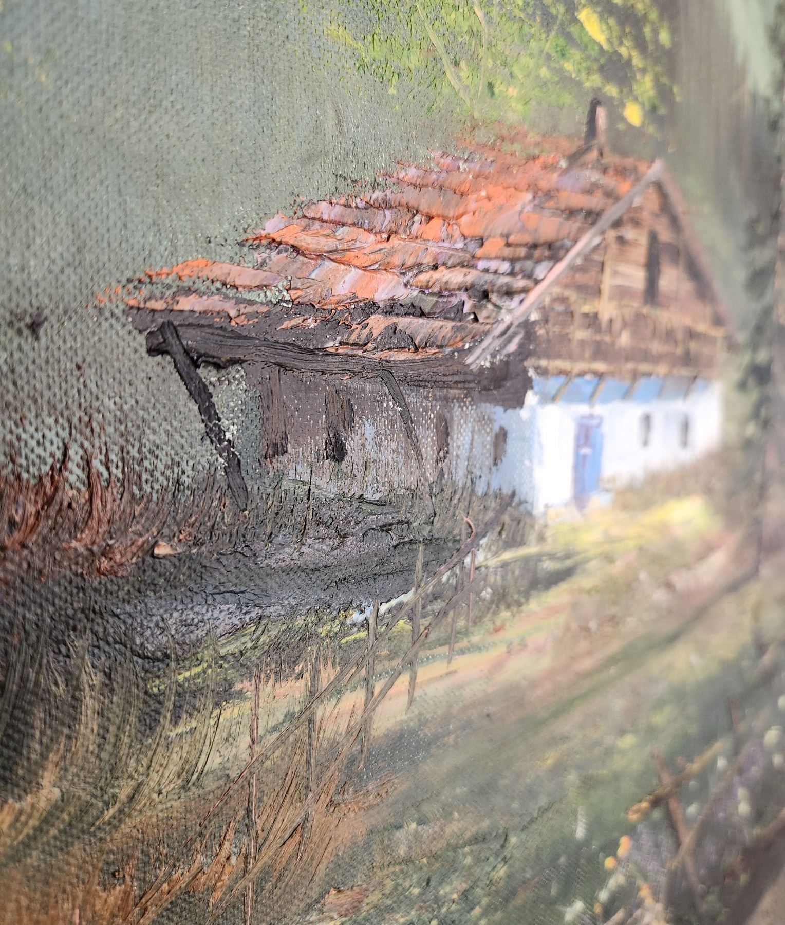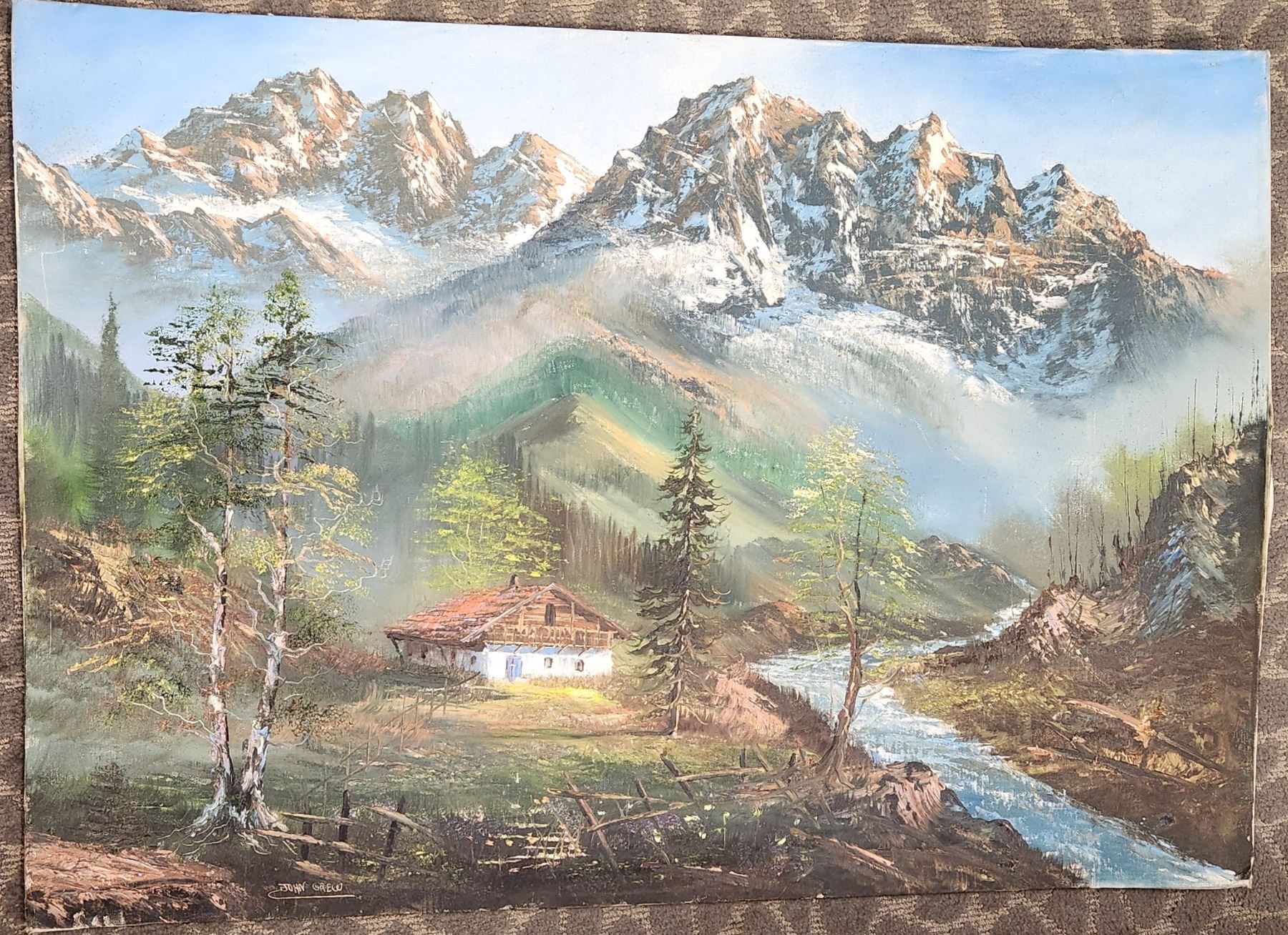 Vintage Oil On Board Cottage And Mountains Scene