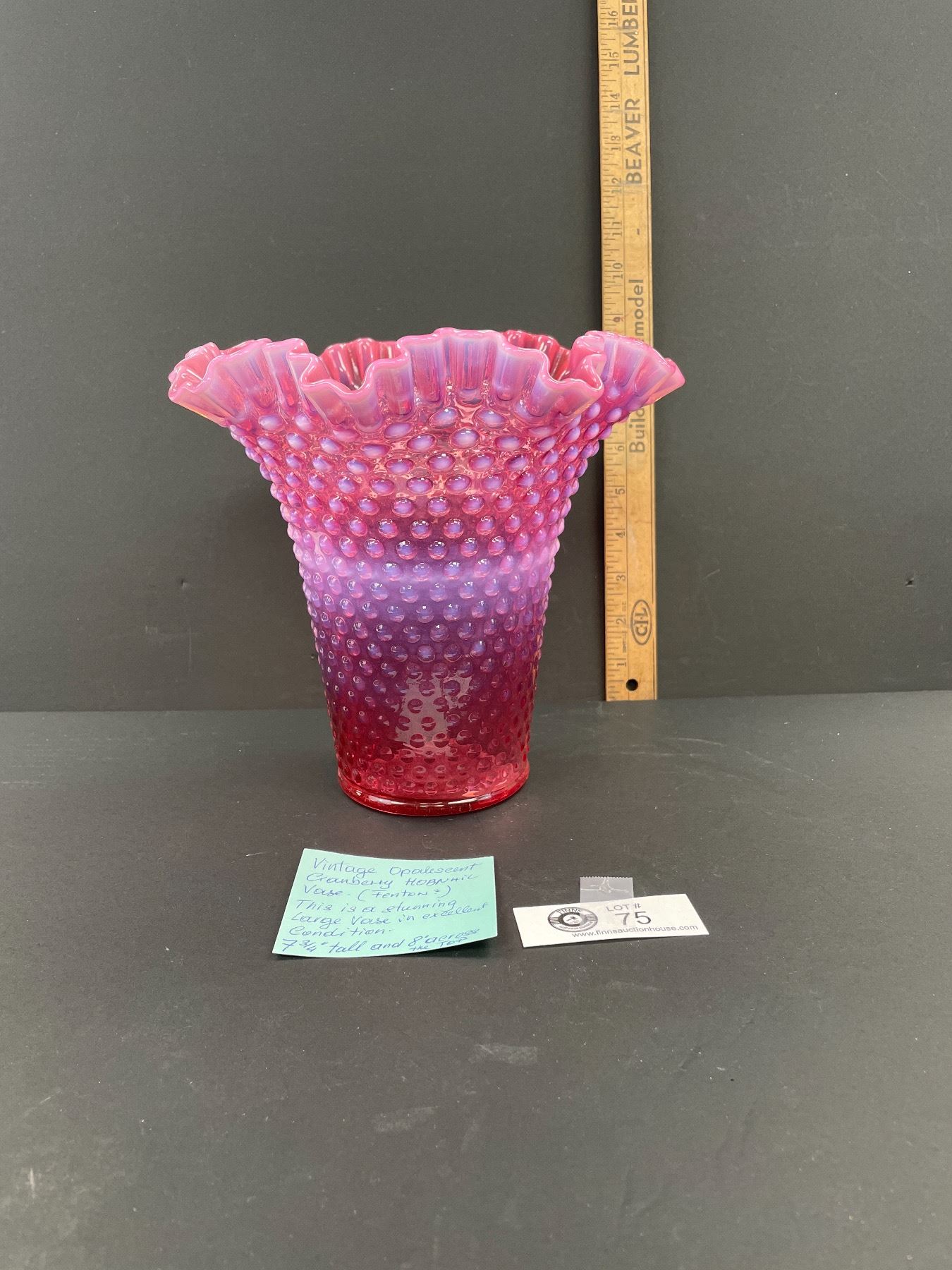 Vintage Opalescent Cranberry Hobnail Vase in Excellent Condition 7.75" Tall *' Diameter at Top