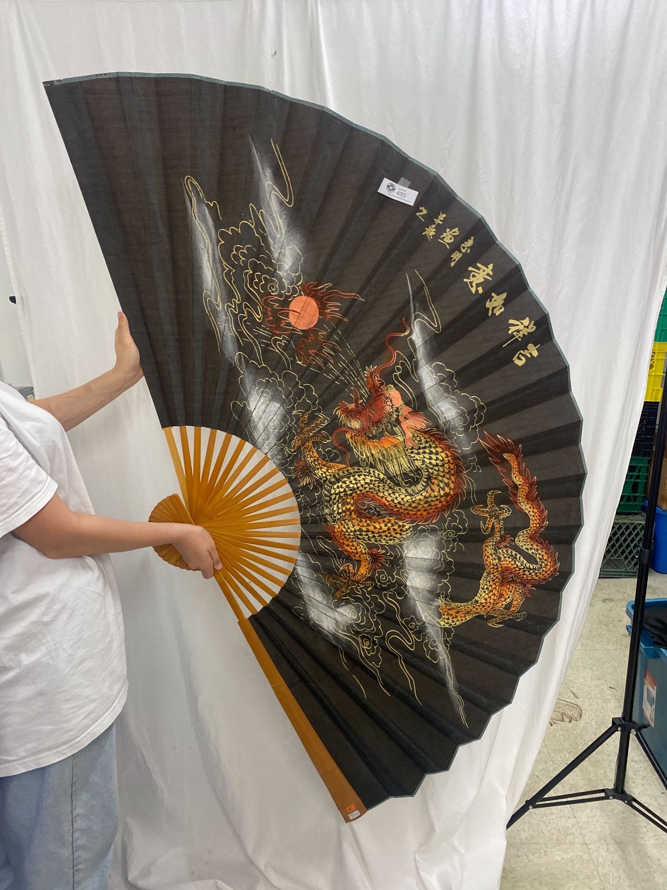 Vintage Oriental Hand Painted Decorative Wall Fan, Dragon Approx 35" x 62"