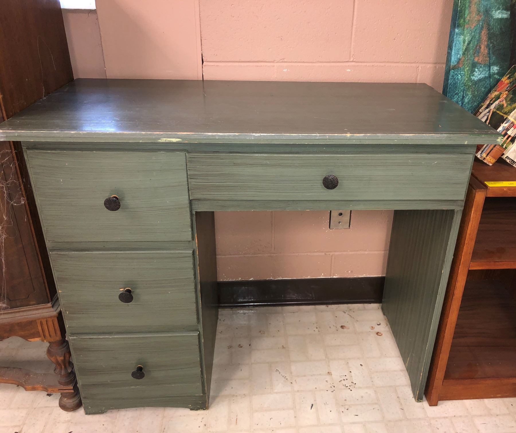 Vintage Painted Study Desk 4 Drawer & Mirror 36" x 30" x 19")