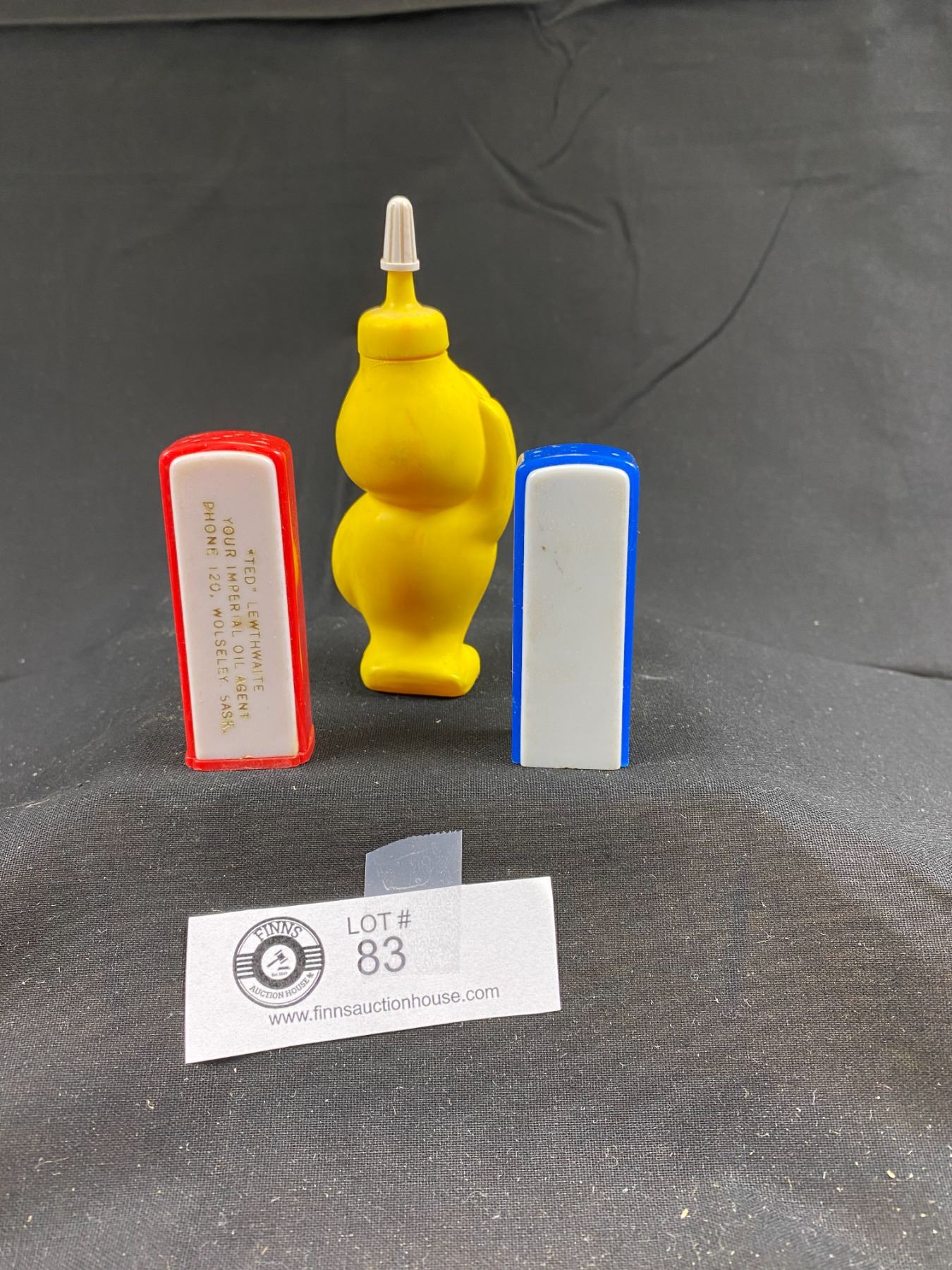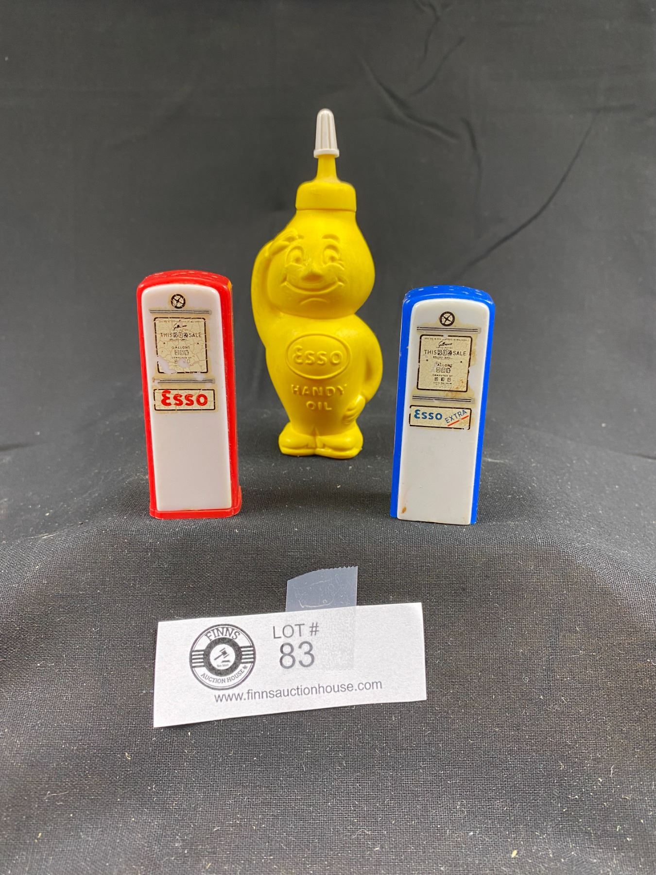 Vintage Pair Of Esso Gas Pump Salt And Pepper Shakers Plus Esso Handy Oiler Guide