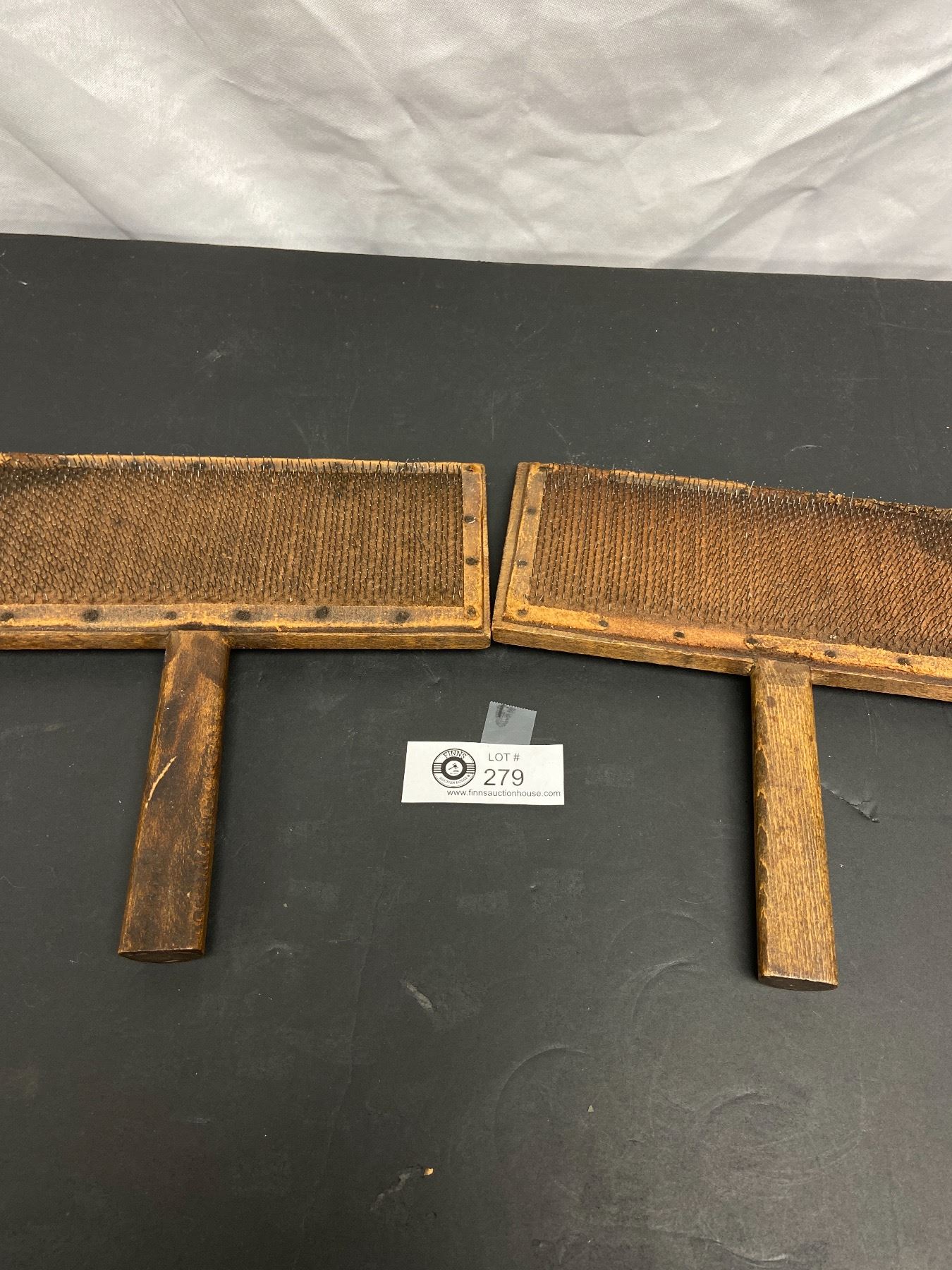 Vintage Pair of Beautiful Wooden Whittemore Sheep Wool Cotton Carding Combs -Paddle Brushes in Nice Shape