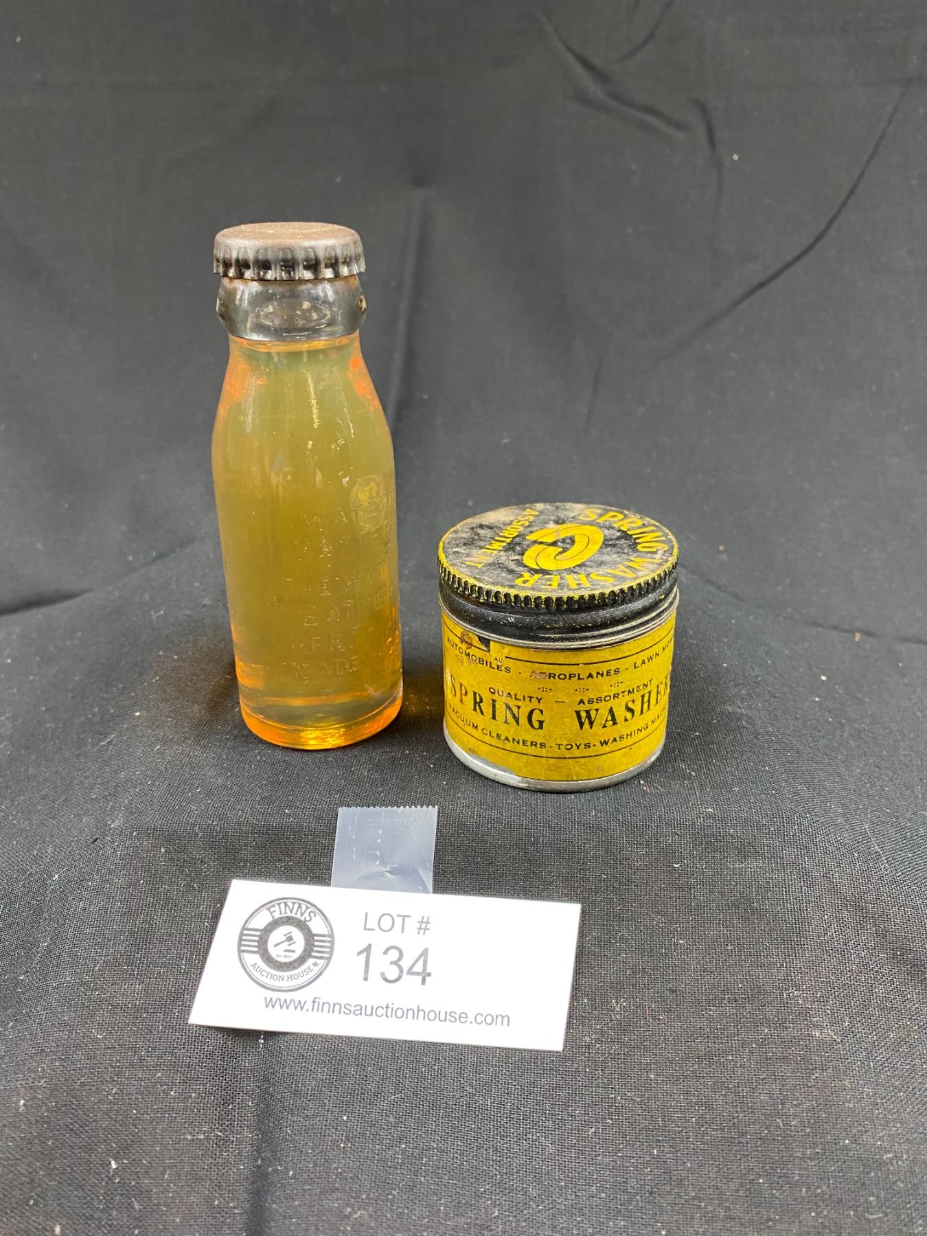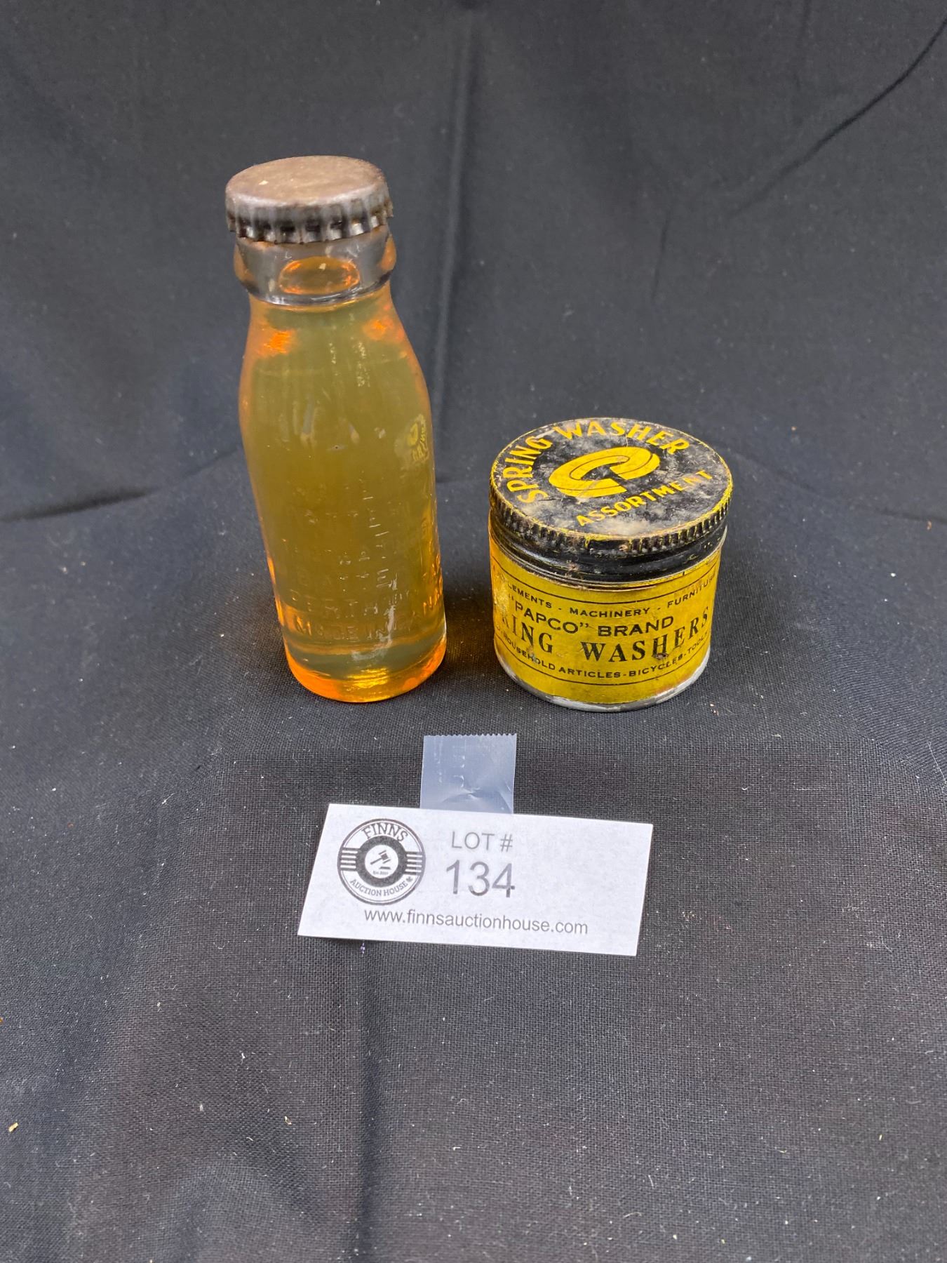 Vintage (Papco) Brand Spring Washers Tin Plus Battery Oil Embossed Bottle With Fluid, Made In Canada