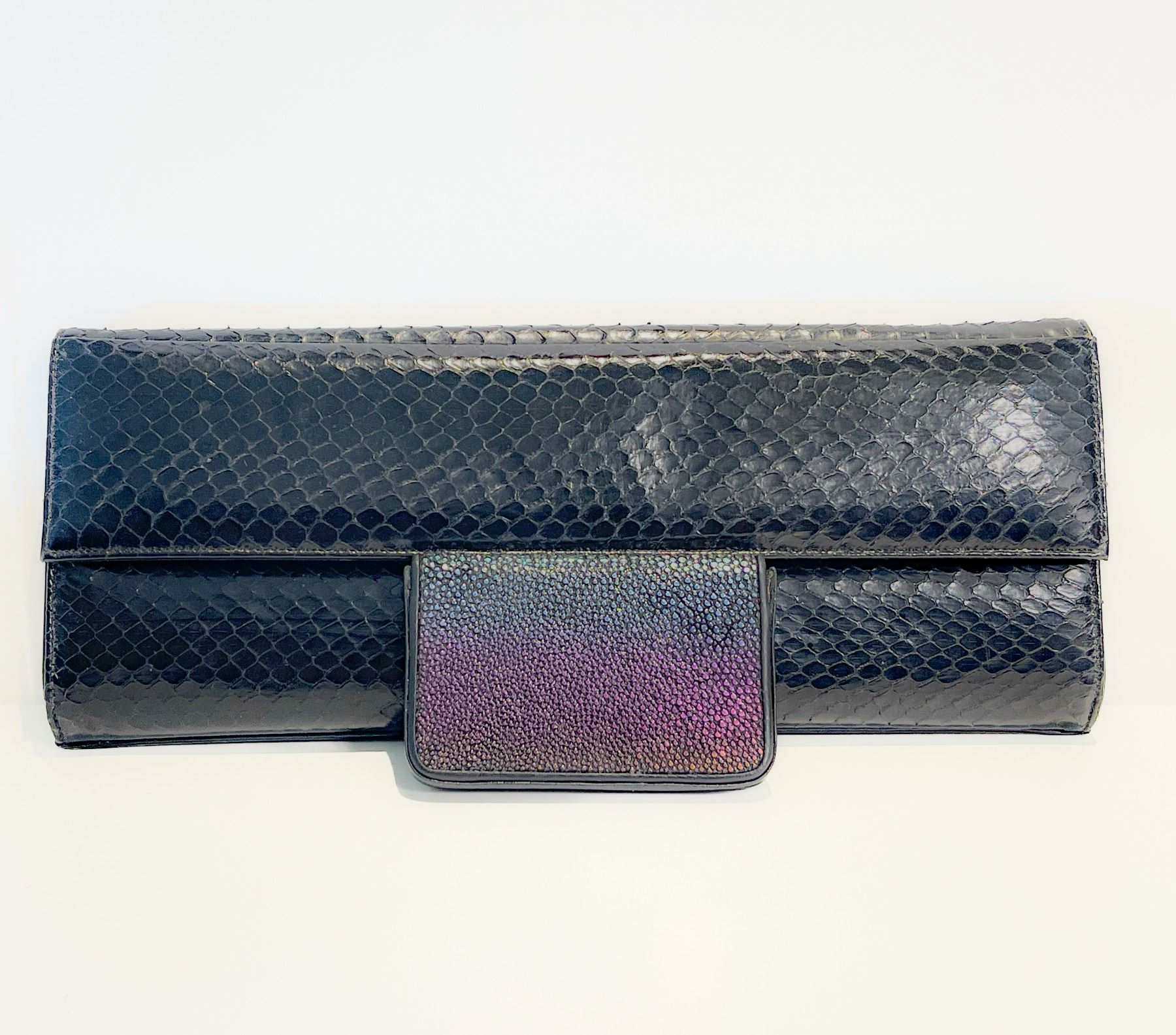 Stunning vintage Paragon Toronto clutch crafted from genuine snakeskin with fabric interior. Includes an authentic stingray leather card holder Both pieces feature beautiful natural textures and quality craftsmanship. The clutch shows light lifting along the top edge but is otherwise in excellent vintage condition.