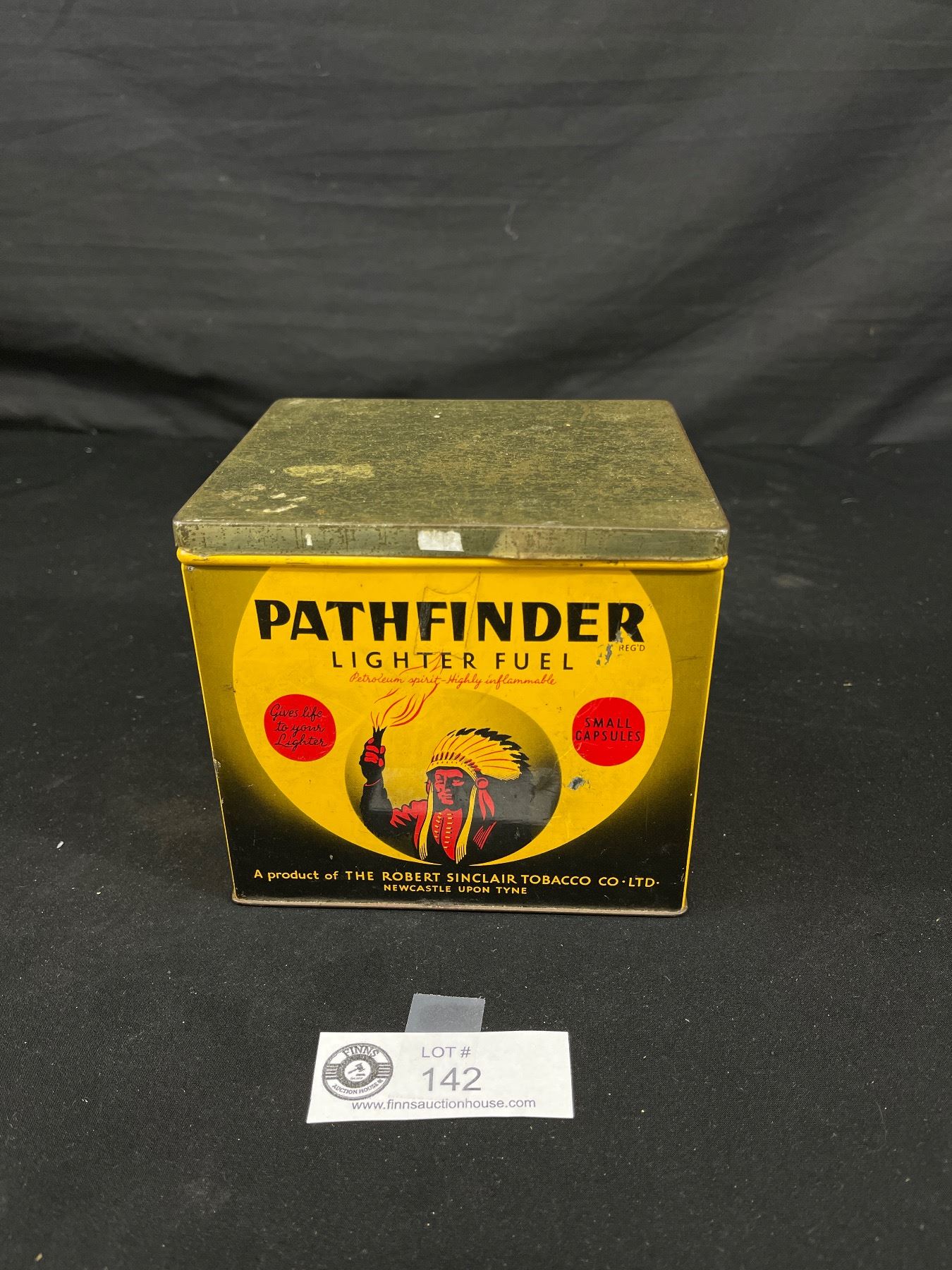 Vintage Pathfinder Lighter Fuel Tin w/ Great Graphics 5"x5"x5"