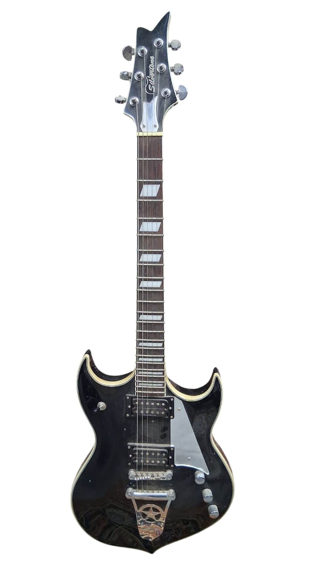 Vintage Paul Stanley Kiss model Silvertone electric guitar with gig bag, nice player