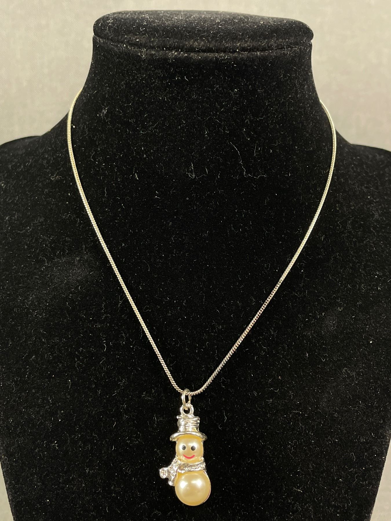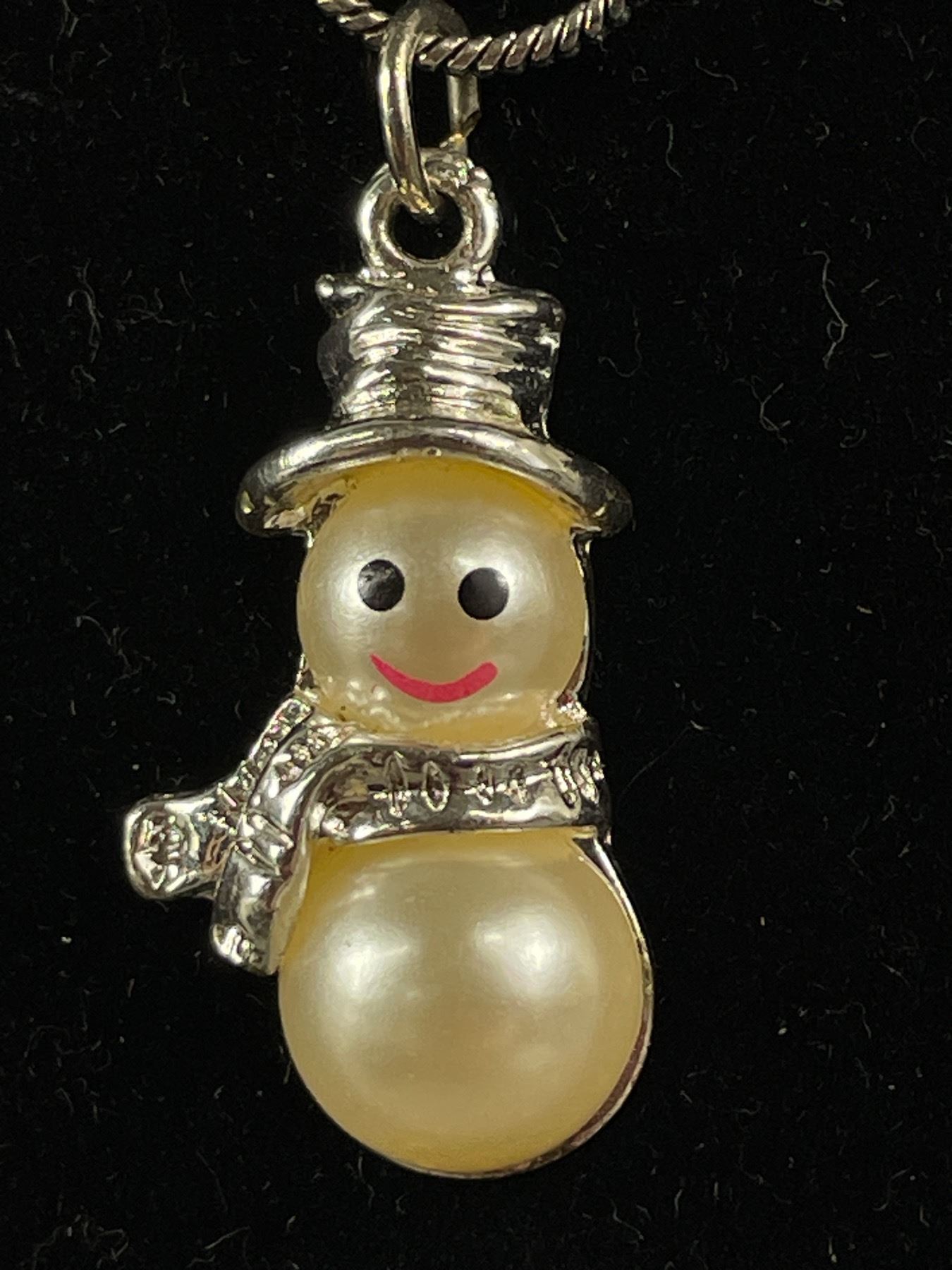 Vintage Pearl Snowman Design Pendant w/ Chain Necklace