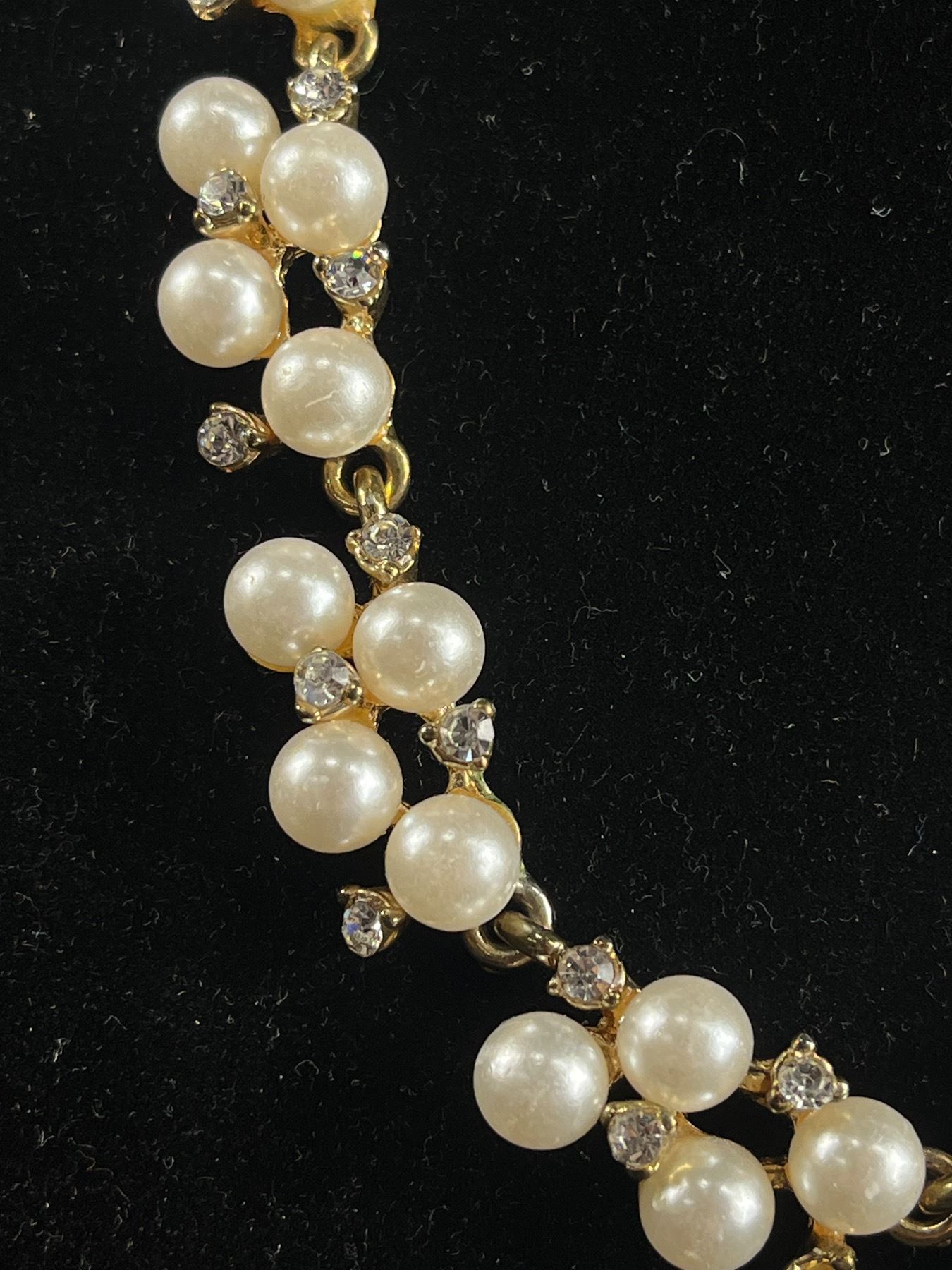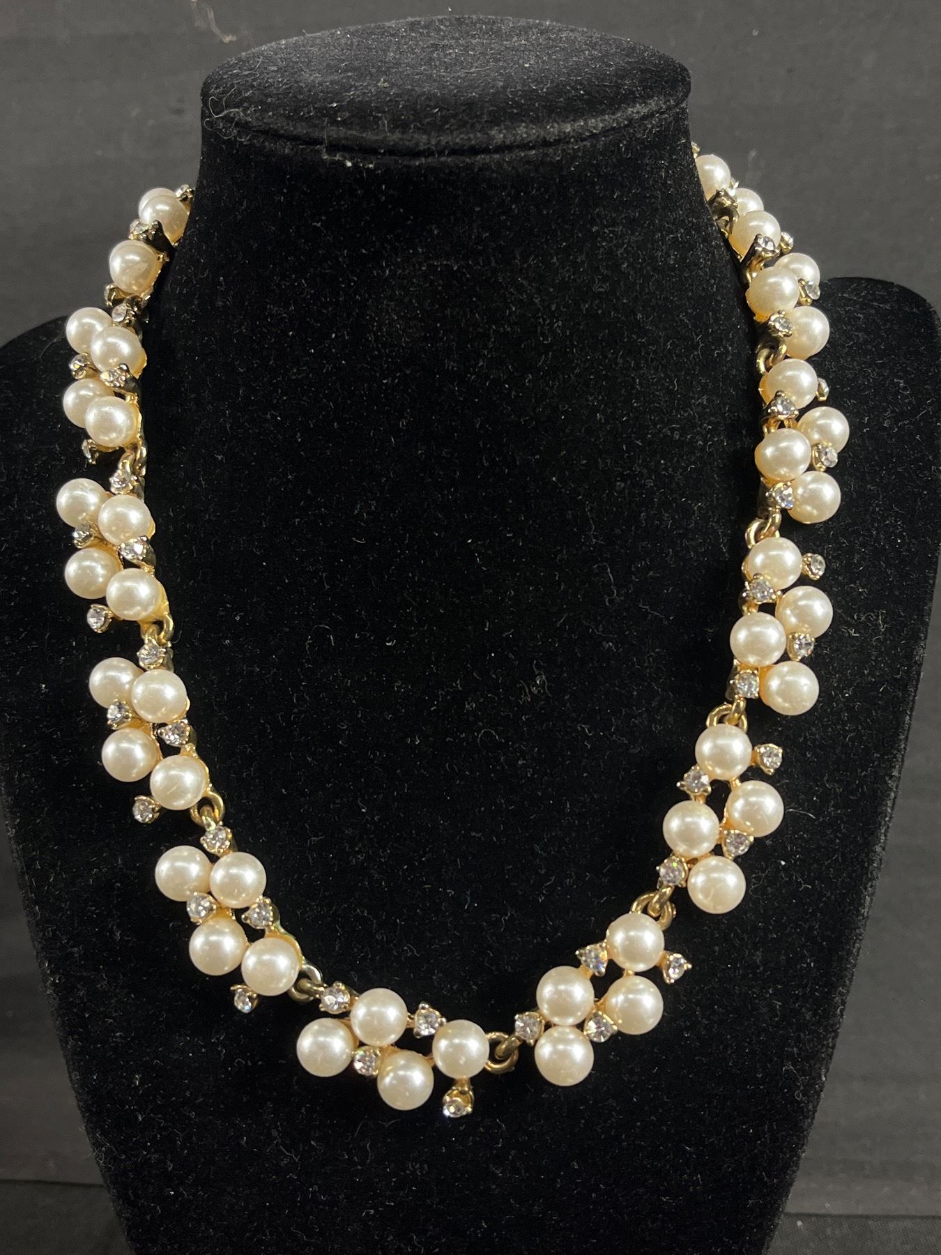 Vintage Pearls with White Tiny Stones Necklace Replaced with Lobster Clasp