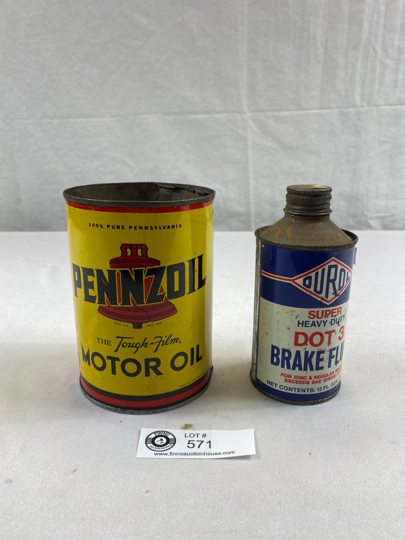 Vintage Pennz Oil Motor Oil Tin Plus Duoirl Cone Top Tin