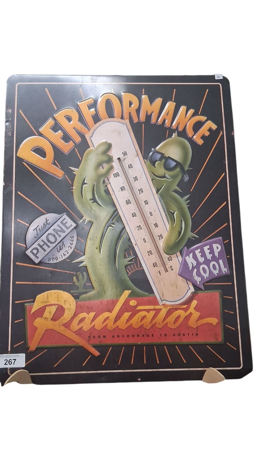 Vintage Performance Radiator metal thermometer sign, therm works, 26"x20"