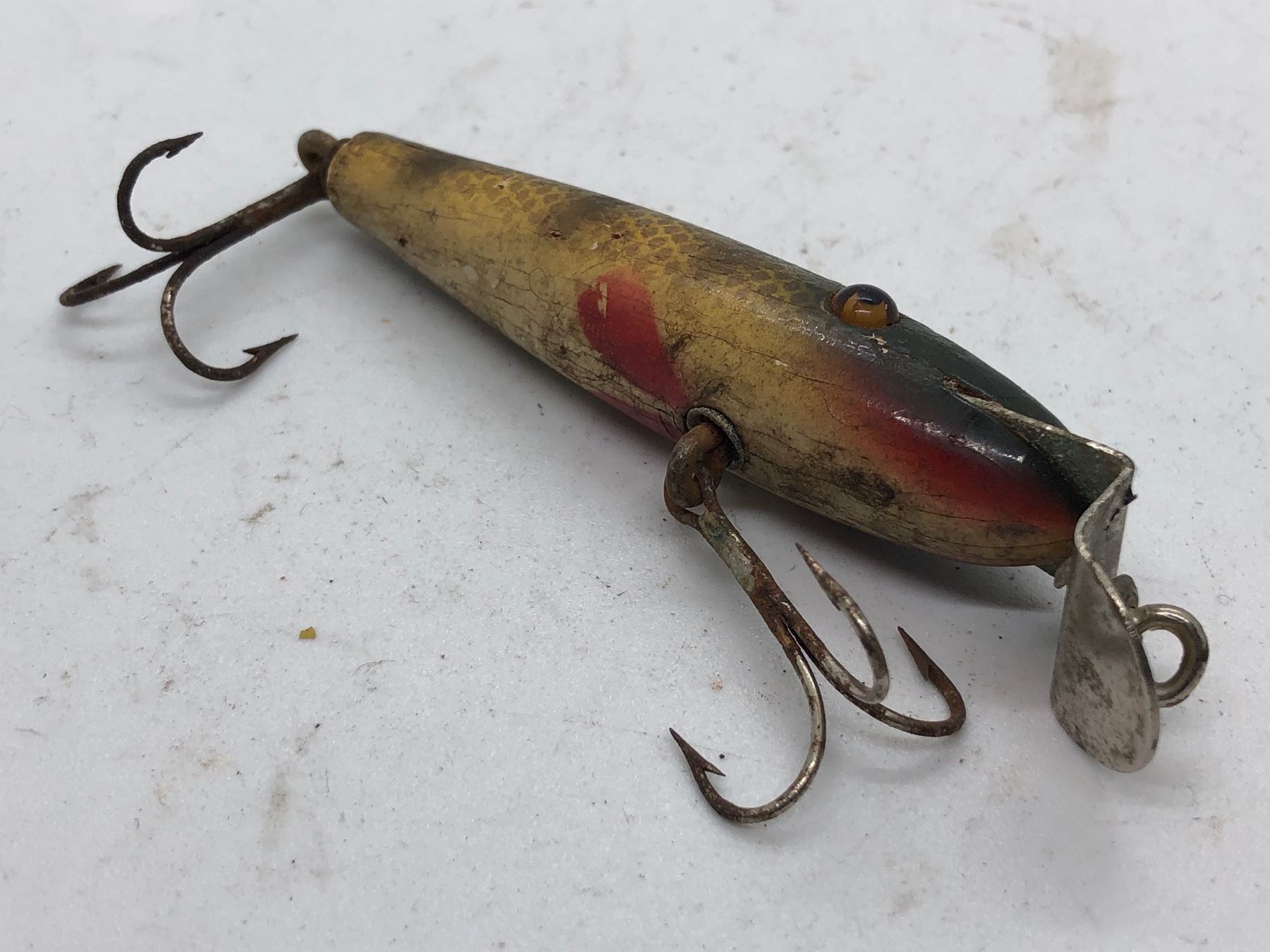 Vintage "Pikie" 3 1/2" wooden fishing w/glass eyes