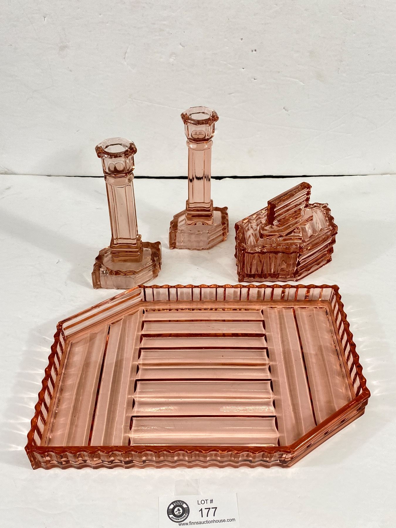 Vintage Pink Glass Vanity Set - Repair to one Candle Holder