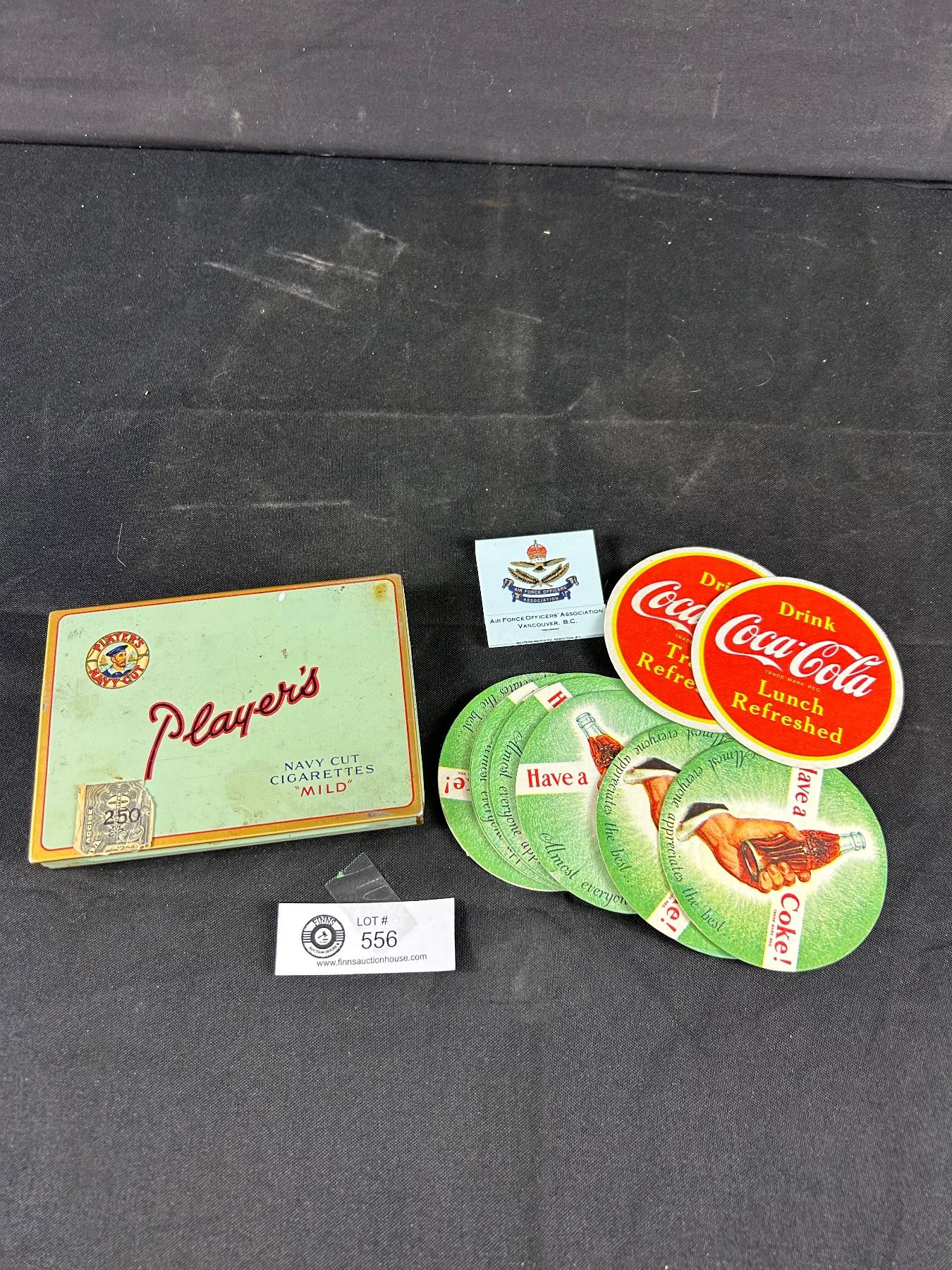 Vintage Player's Cigarette Tin, Coke Drink Coasters & 1 Van.B.C AirForce Matchbook
