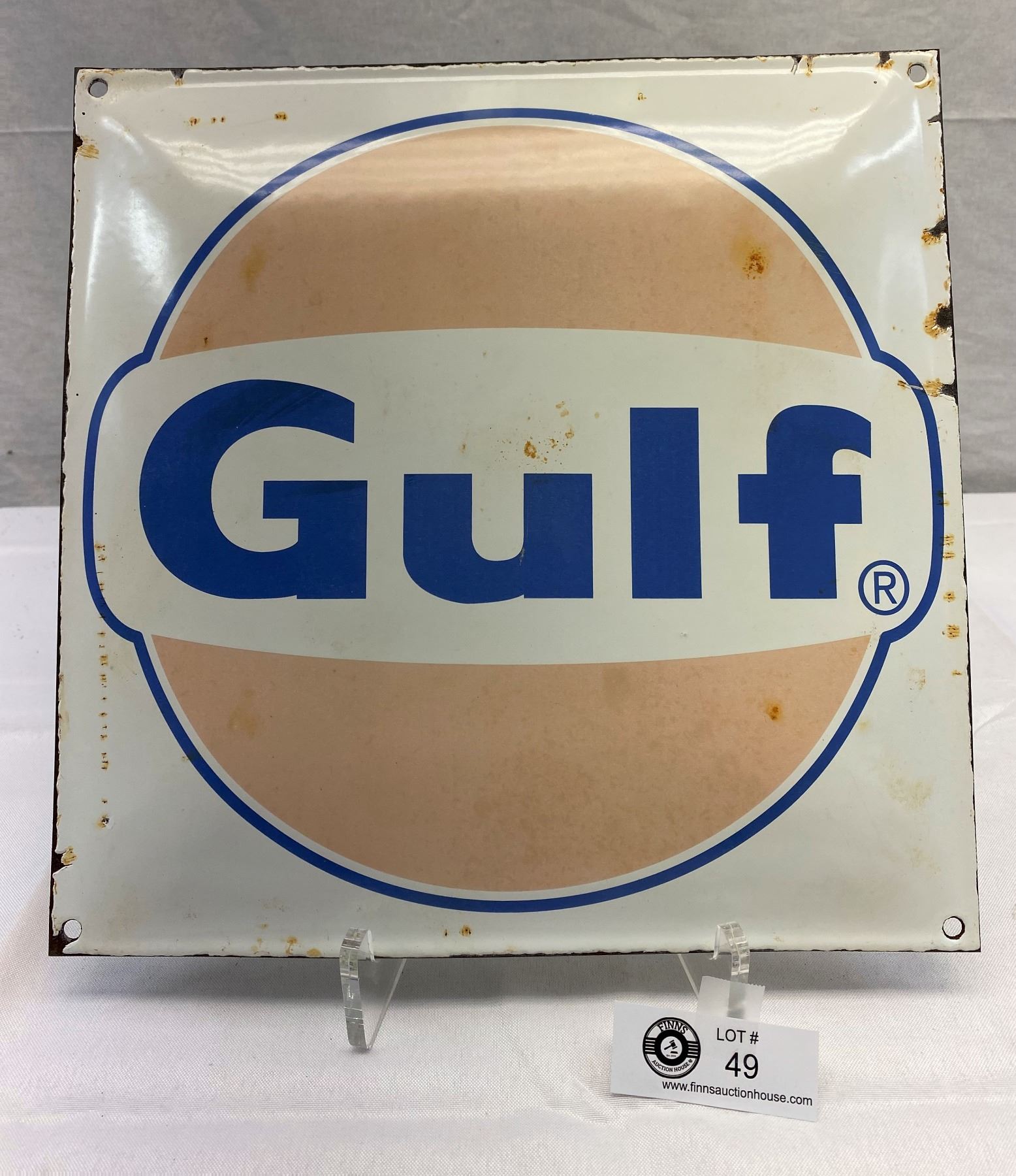 Vintage Porcelain Gulf Sign, 12"x12", Nice Shape