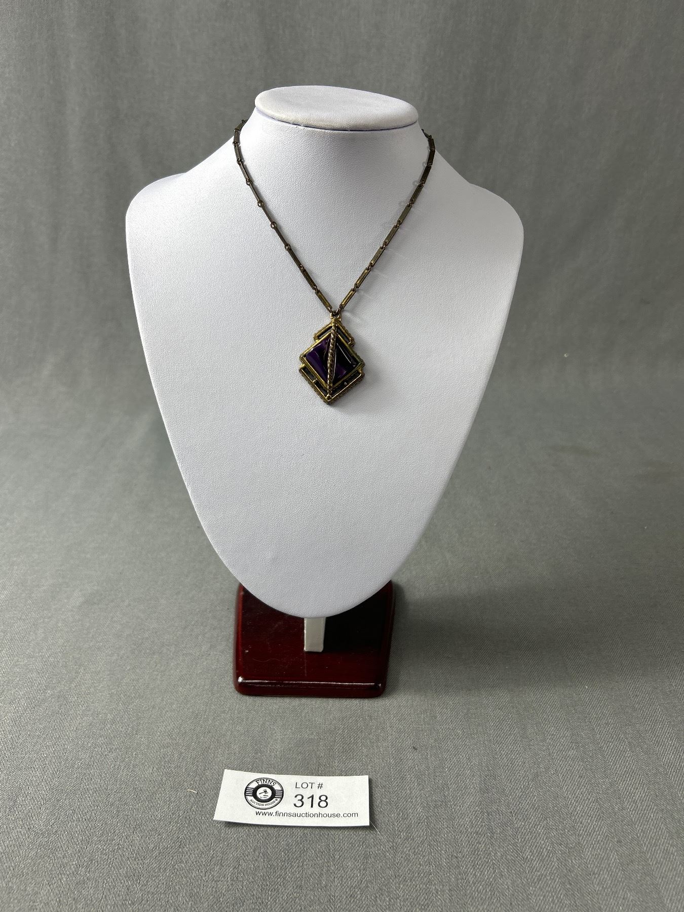 Vintage Purple Celluloid Stone Pendant Necklace Choker Size 15"L
