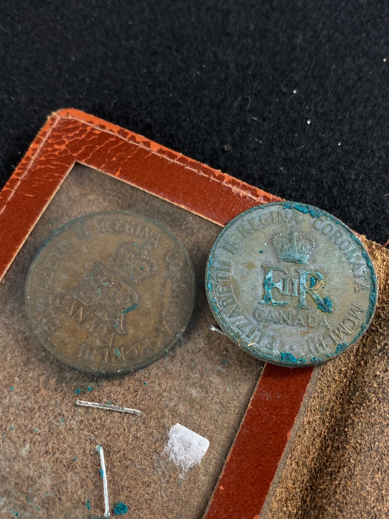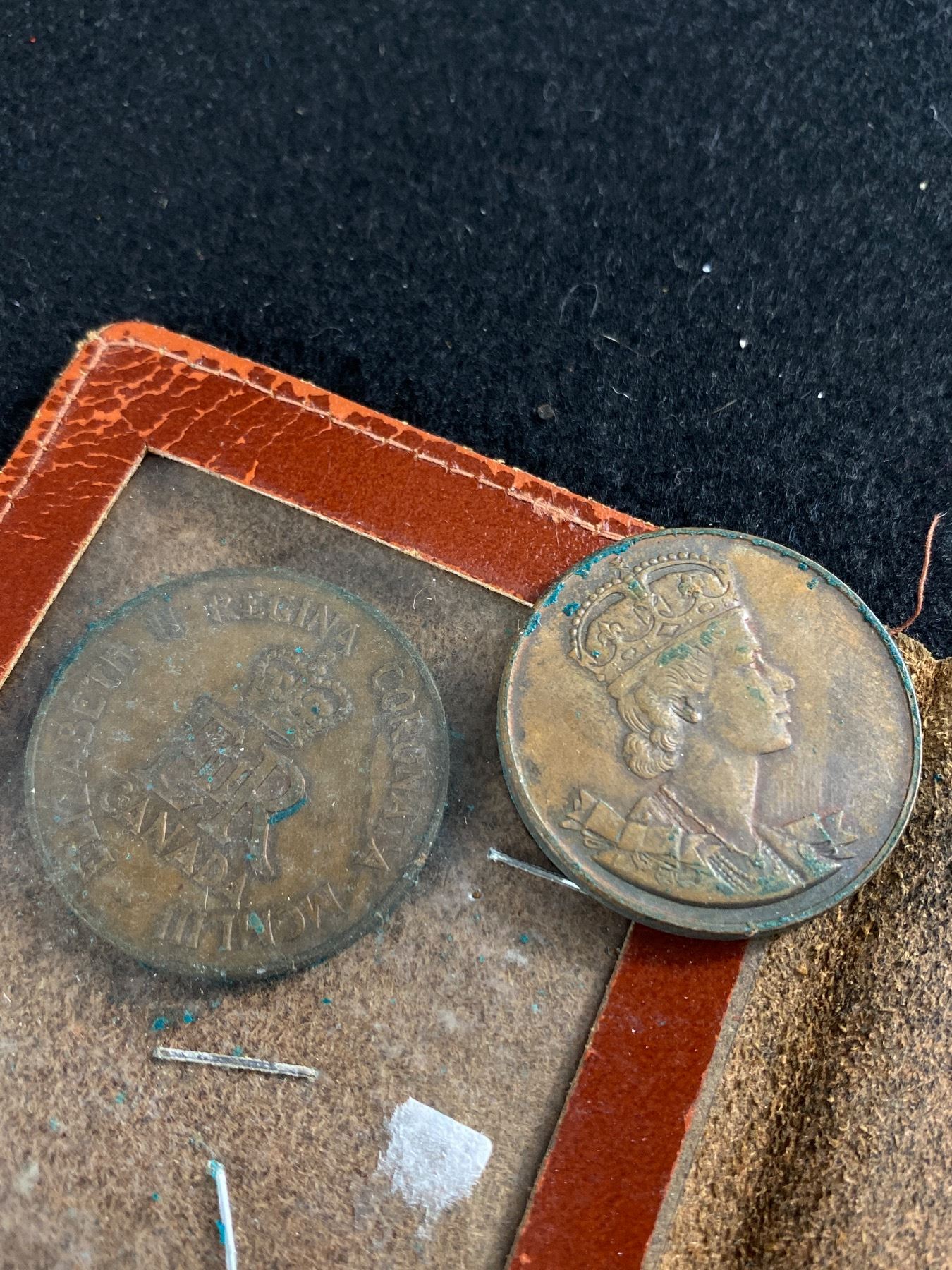 Vintage Queen Elizabeth Coronation Coins/Tokens In Antique Leather Case